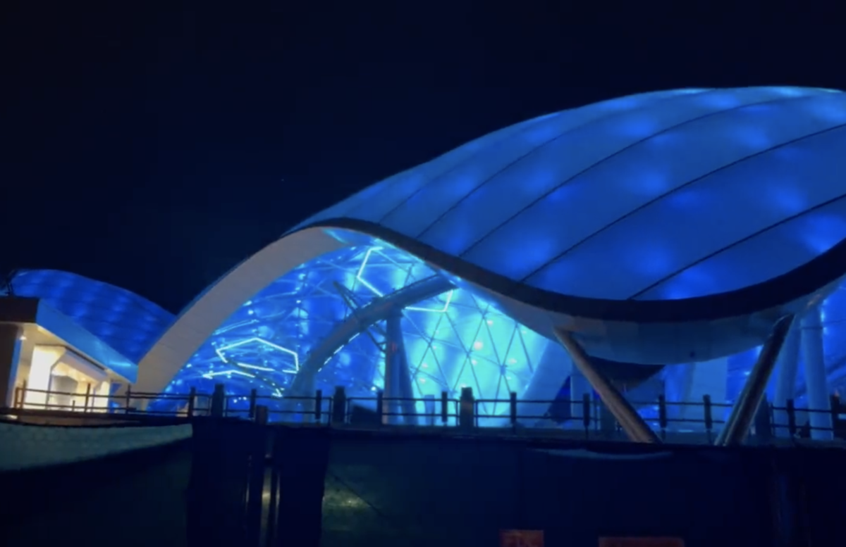 The hexagonal lighting previously teased moves along with each ride vehicle as it launches through the Upload Canopy, with the shades of blue shifting as well periodically to create a beautiful light sensation.