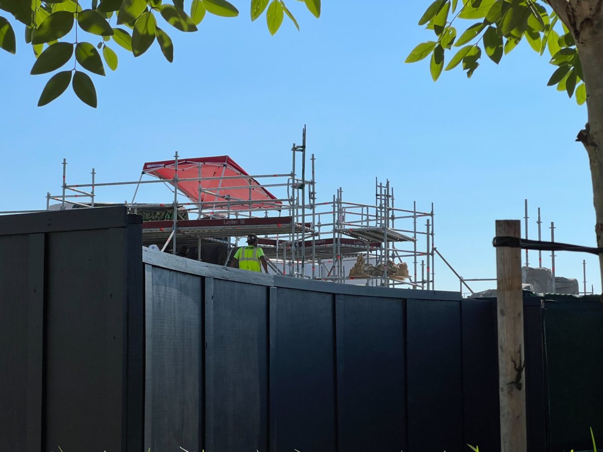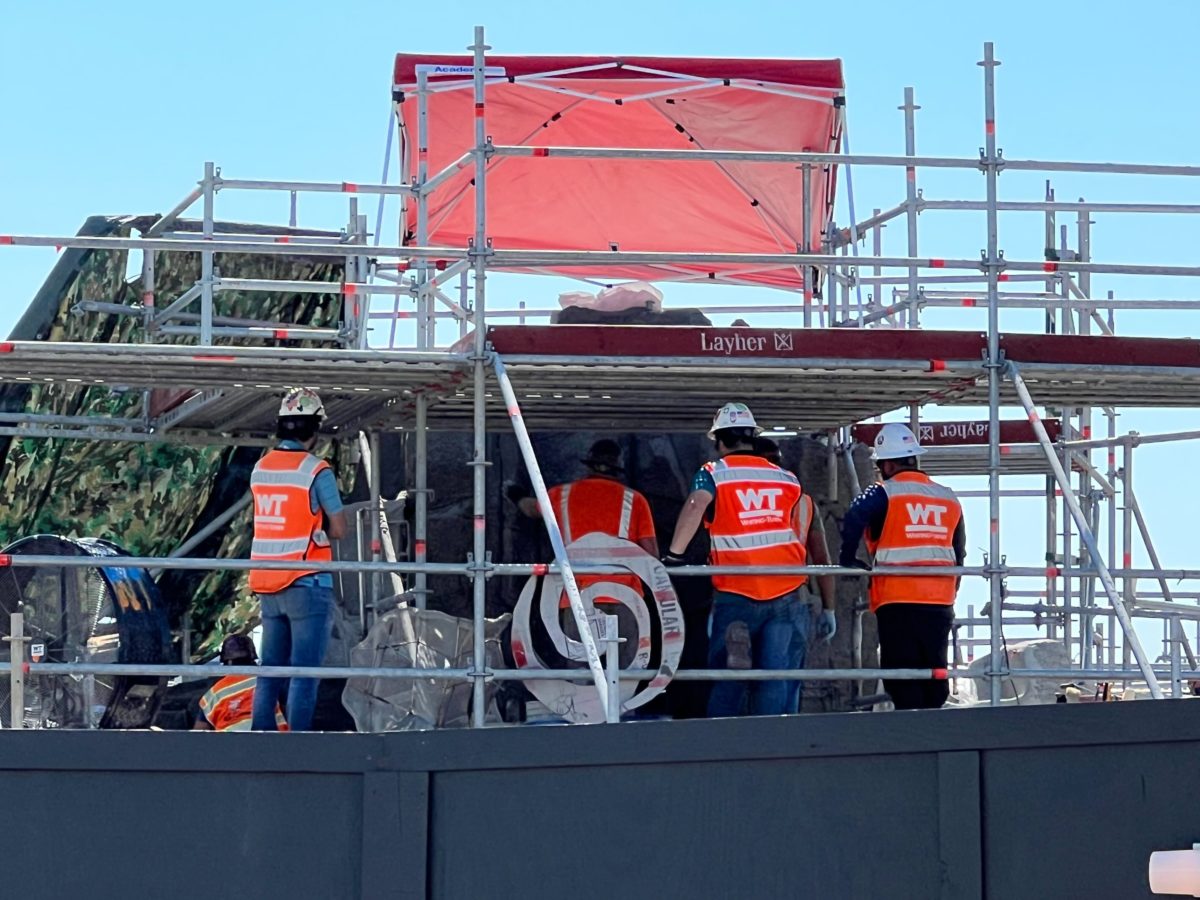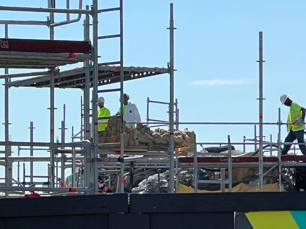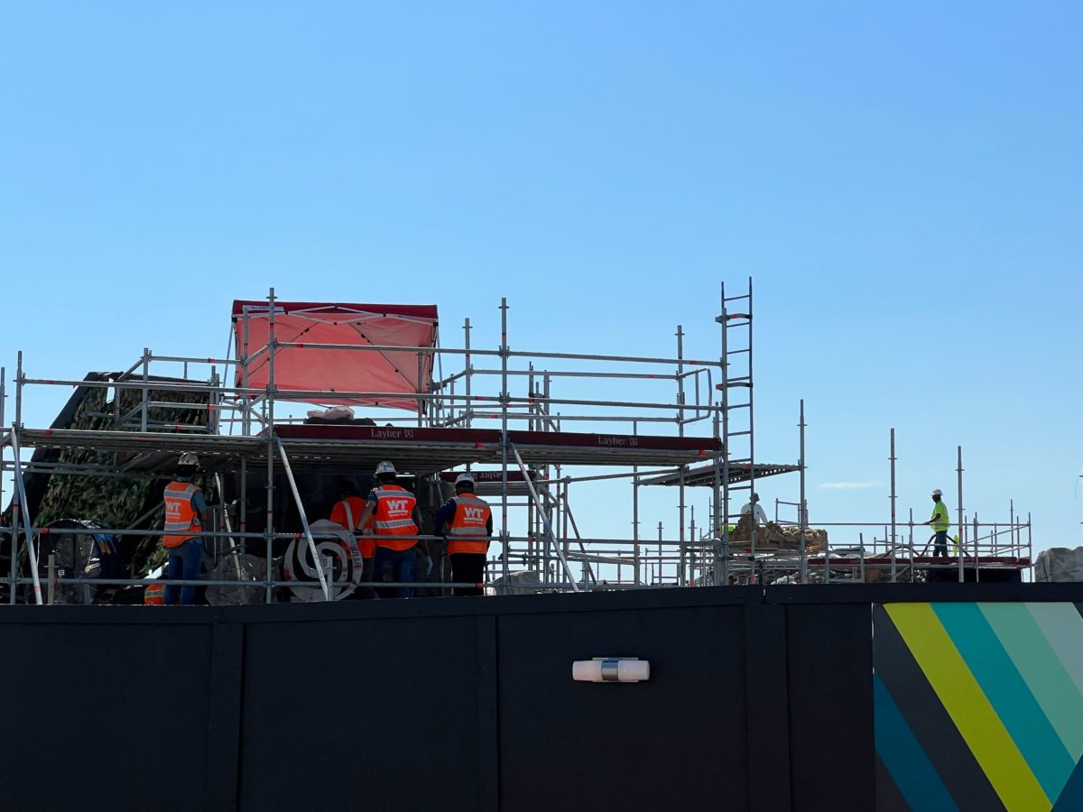 It’s currently on a set of scaffolding, easily accessible to construction workers.