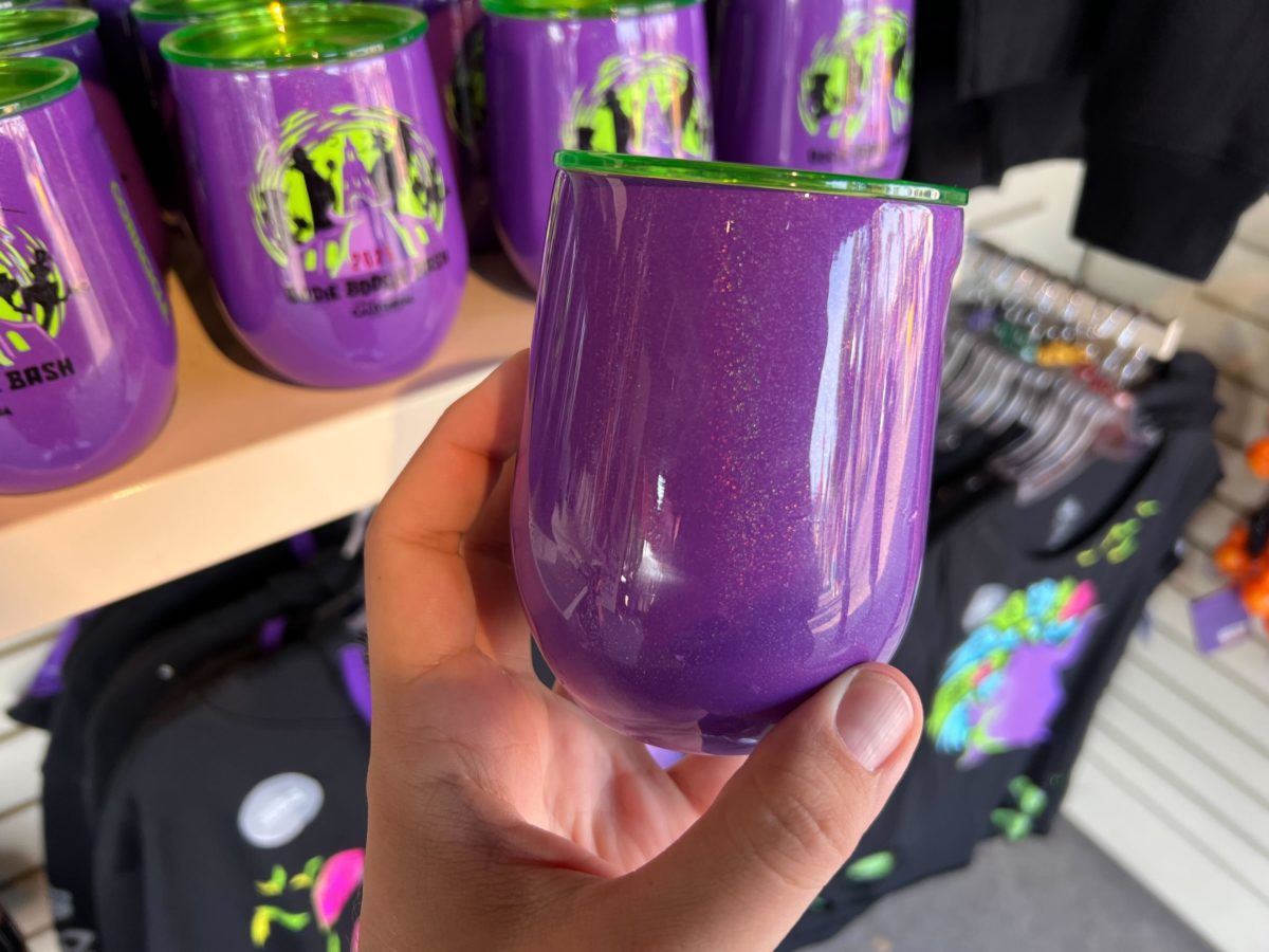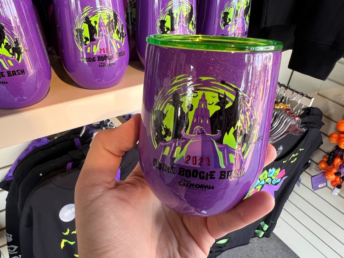 This stemless tumbler is purple, with Oogie Boogie and the Disney Villains pictured at Carthay Circle.