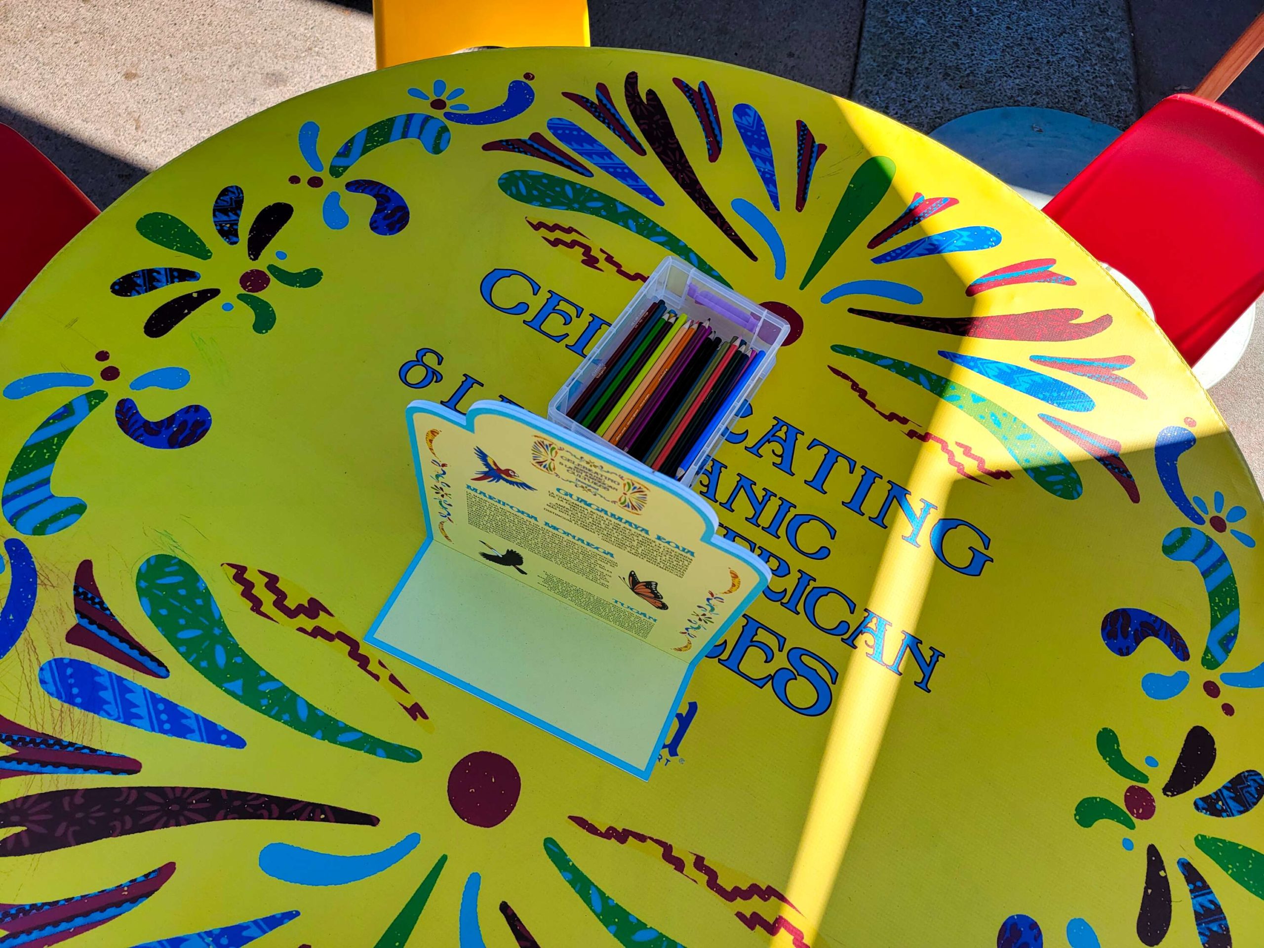 Nearby, there are tables set up for a kid’s craft station for the month-long celebration of Hispanic and Latin American cultures.
