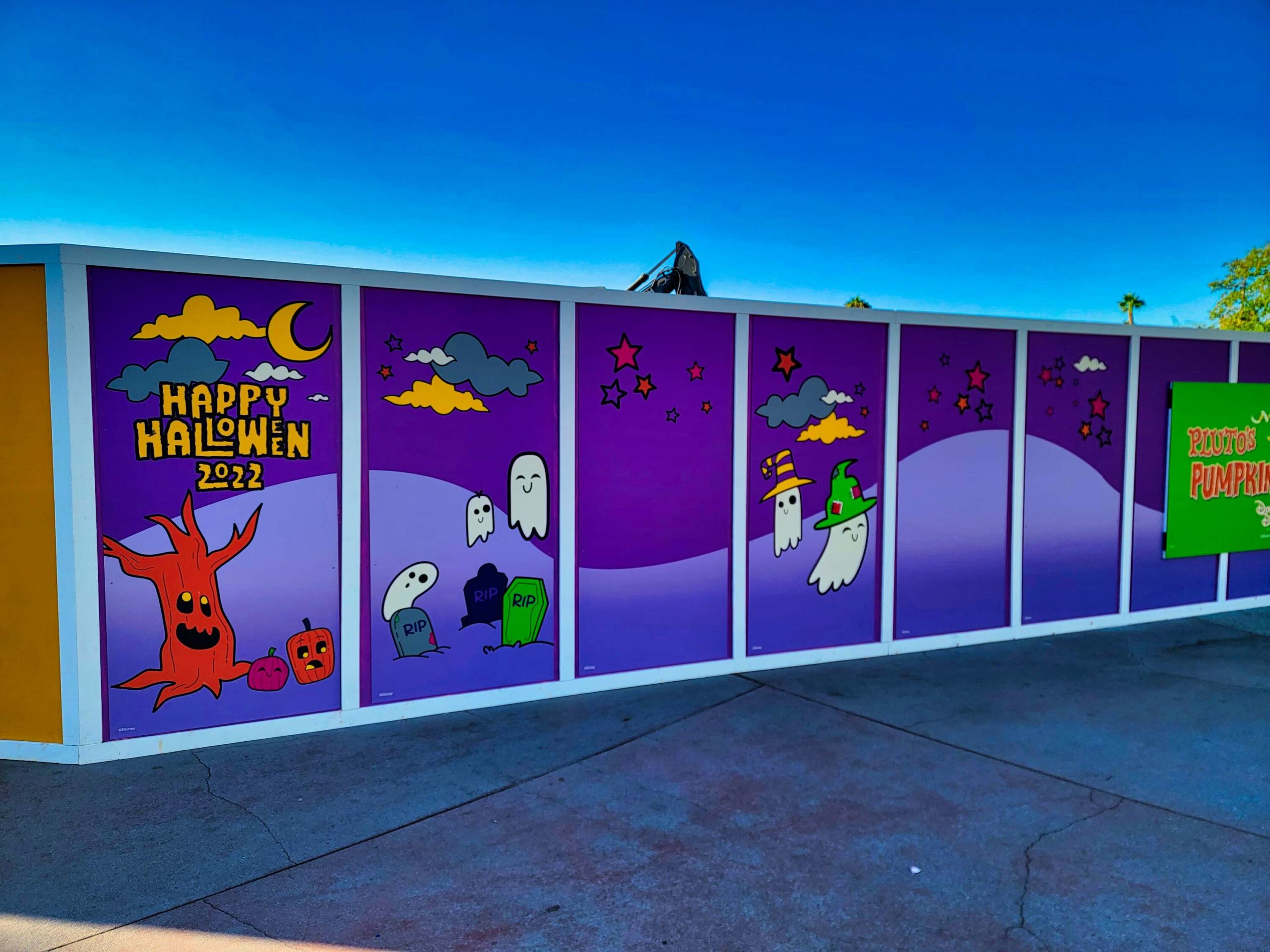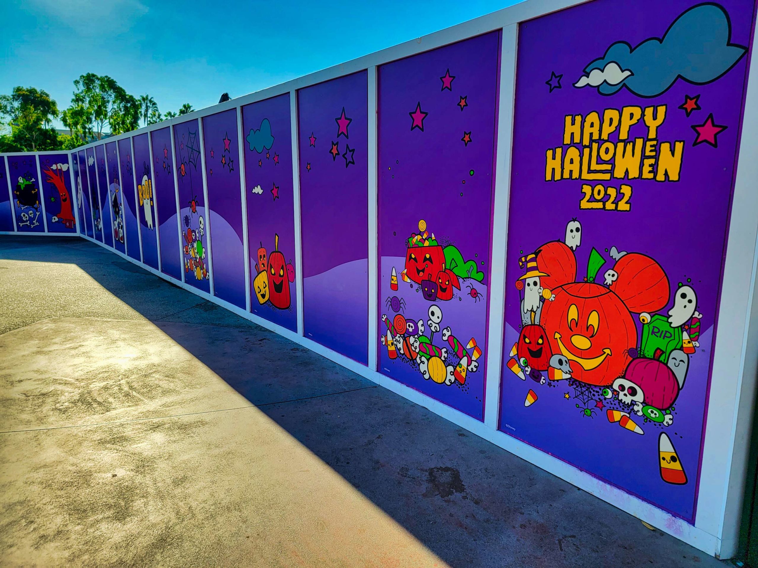 The construction walls at the end of the walk are now decorated for Halloween. If we have to have construction walls for a while, at least they’re themed.
