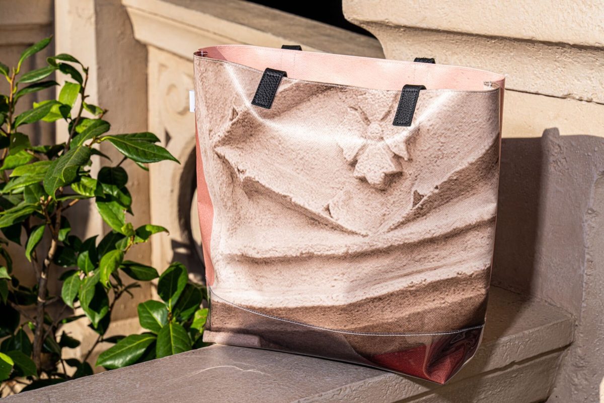 Disneyland Paris partnered with BILUM, an Ile de France-based business that specializes in upcycling tarps and other materials. Each of the 2,300 bags in the collection was handmade.