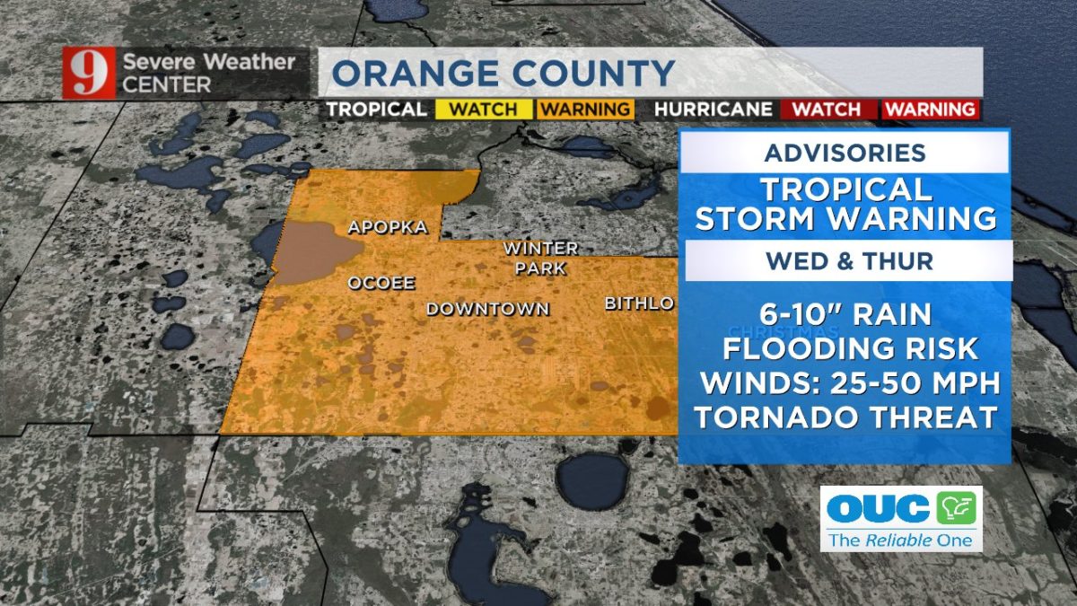 There is also an increased tornado risk as well as a flood watch still in effect with 6-10” of rain expected in Orange County.