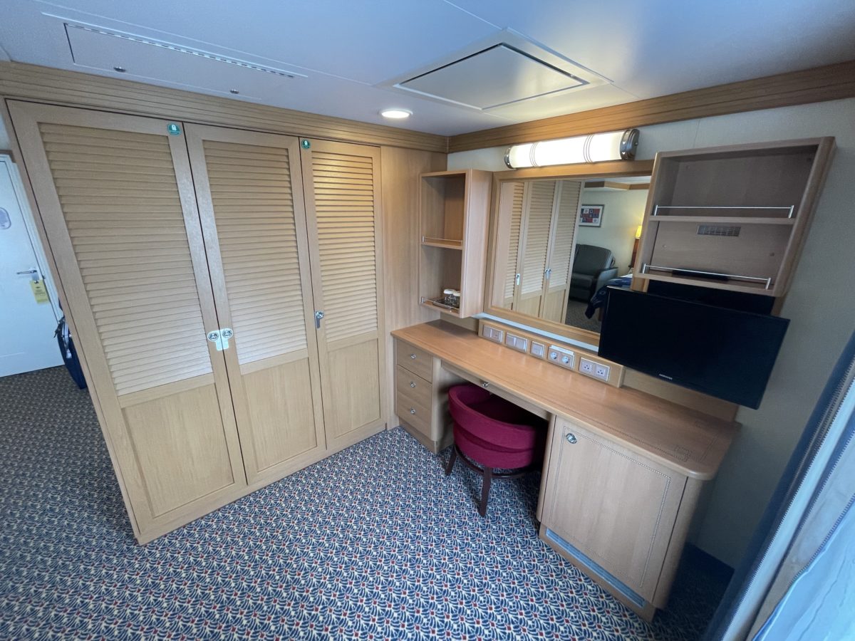 Join us for a sailing on Disney Cruise Line’s Disney Fantasy. We recently stayed in an accessible deluxe family oceanview stateroom.