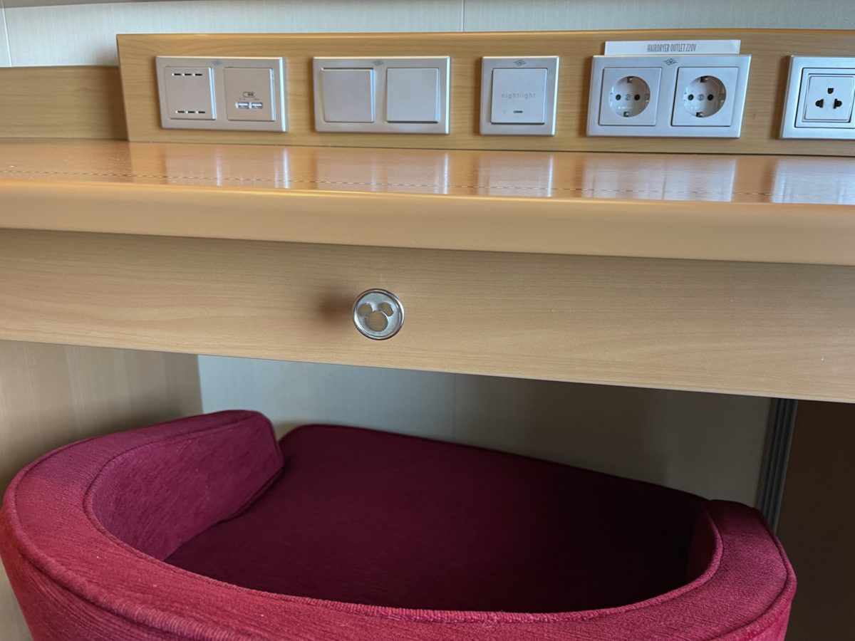 The carpeting, furniture, and decorations are similar to those found on other Disney Cruise Line ships. Also like other cruise ships, you need to put your room key (or another card) into the slot by the door to control the lights.