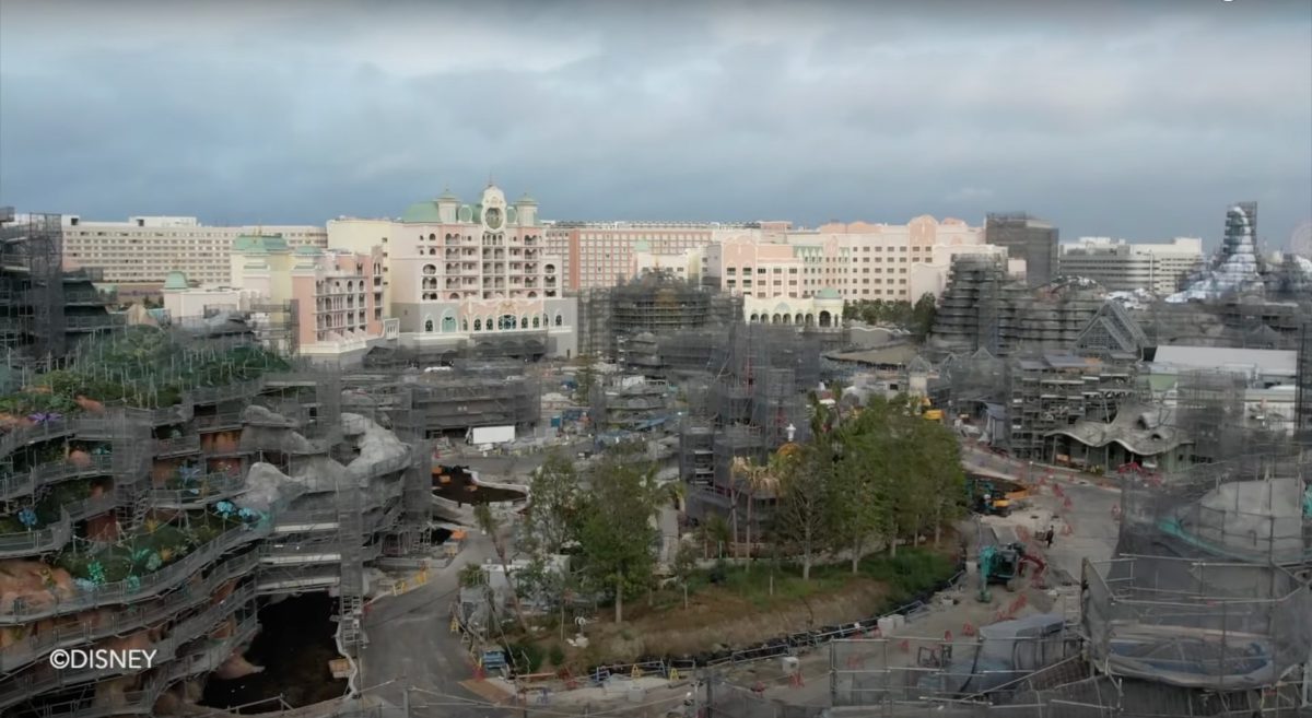 New drone footage released by the Oriental Land Company shows there’s still work to be done on the land, pretty consistent with our latest construction report.