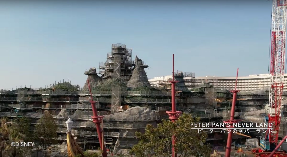 We can see the Jolly Roger is pretty much complete in the drone footage, and a good amount of decoration is in place on the Neverland mountains.