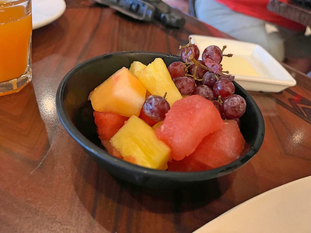 This morning we caught the debut return of Lilo, Stitch, Mickey Mouse, and Pluto. They parade around intermittently throughout breakfast with Hawaiian Roller Coaster Ride, the main song from the film “Lilo & Stitch,” playing in the background.