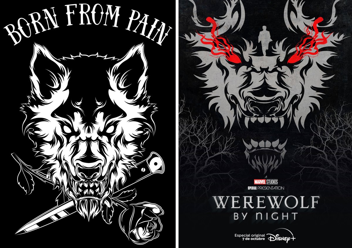 With the recent release of the “Werewolf By Night” poster, graphic designer Midiankai noticed uncanny similarities to their previous work with rock band Born From Pain. While plagiarism is a very subjective thing, many of the details seem to closely match the artist’s “Lone Wolf” design.