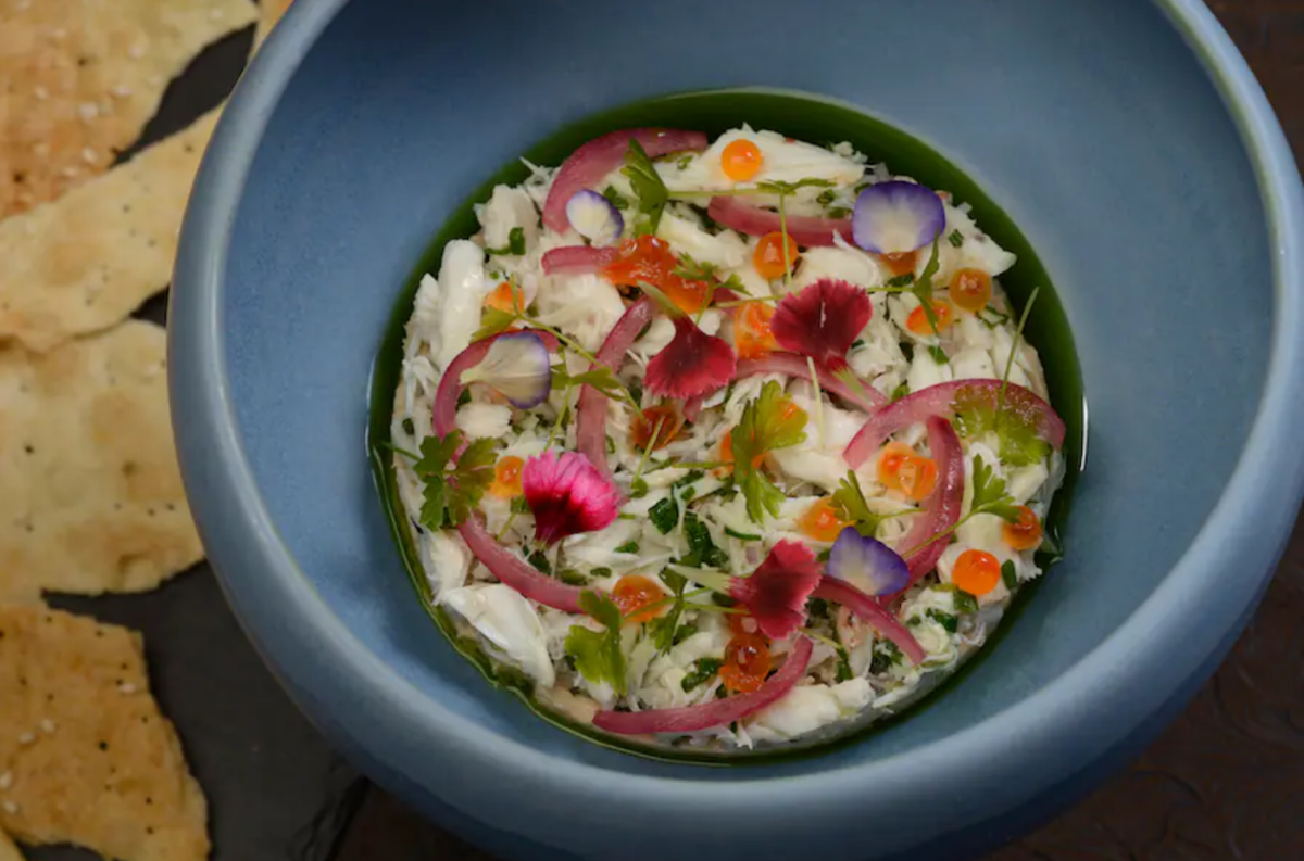 - Smoked Trout and Crab Dip (pictured above): Salmon Roe, Chive Oil, Sesame Seed Lavosh – $16