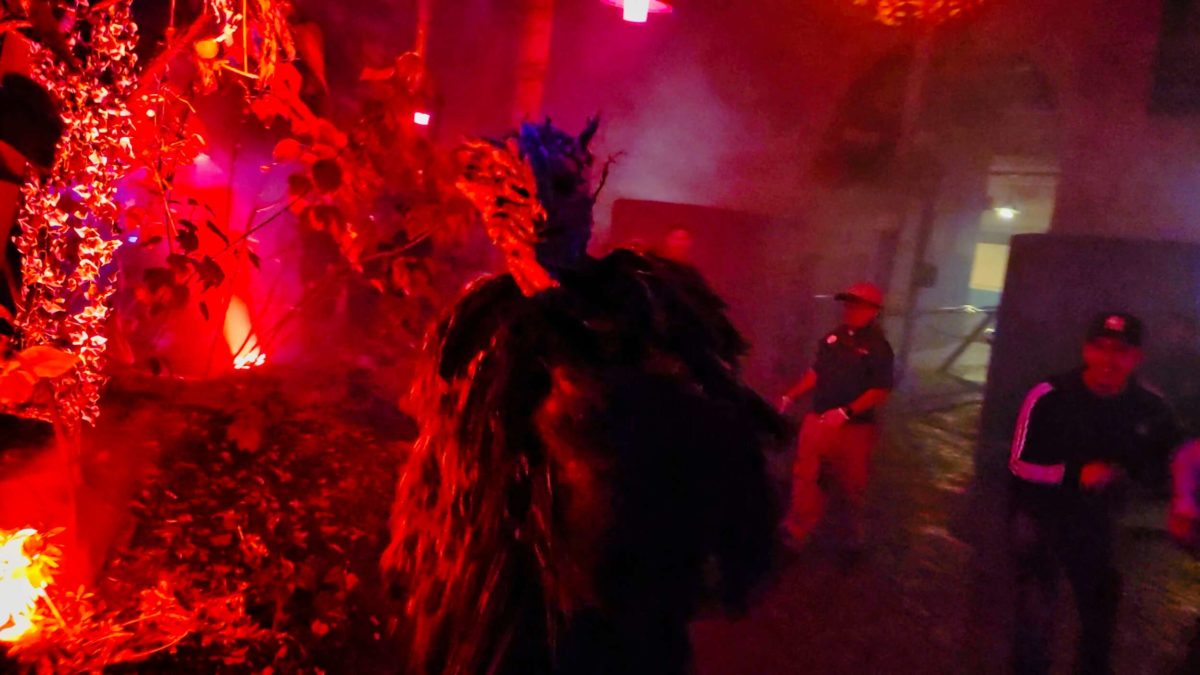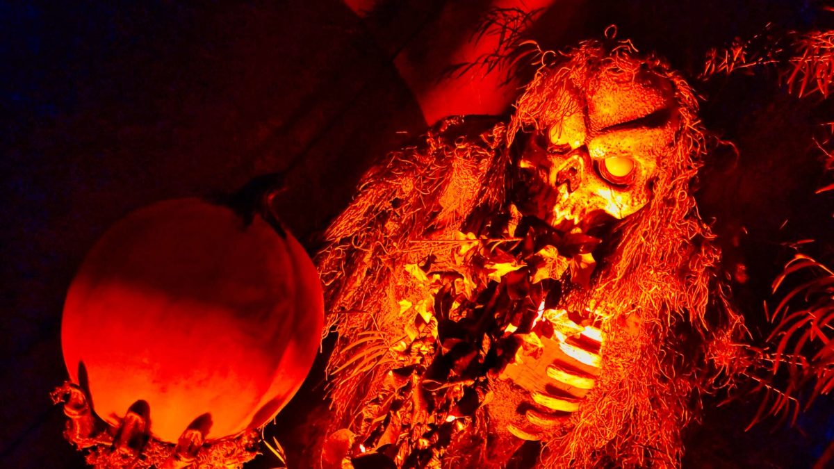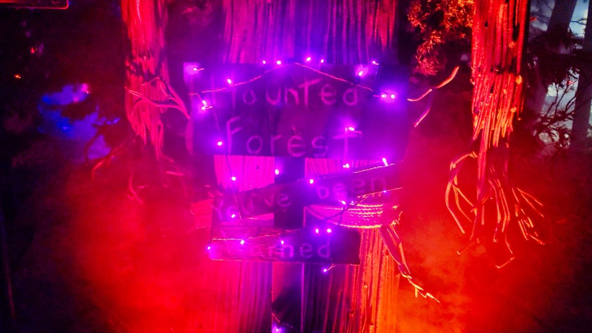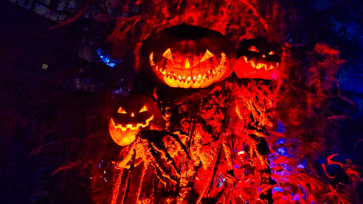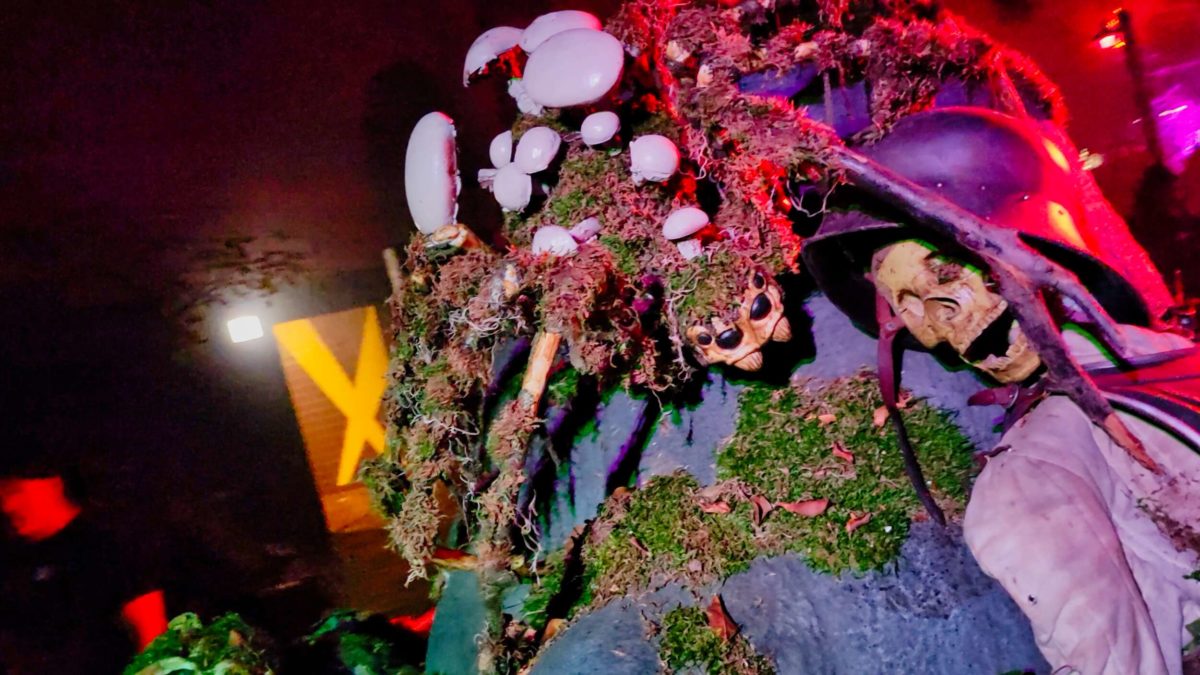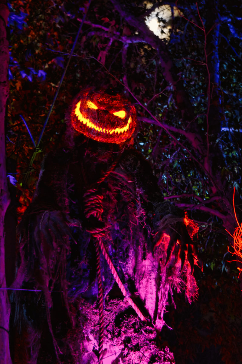 It has props and gags from previous years’ houses on display with themed lighting and plenty of fog machines.