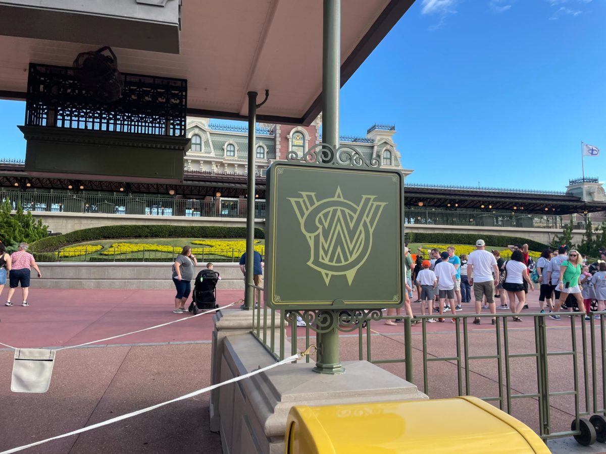 Similar signs with the “WDW” iconography from the Walt Disney World Railroad station can be found at the entrance of the Magic Kingdom.