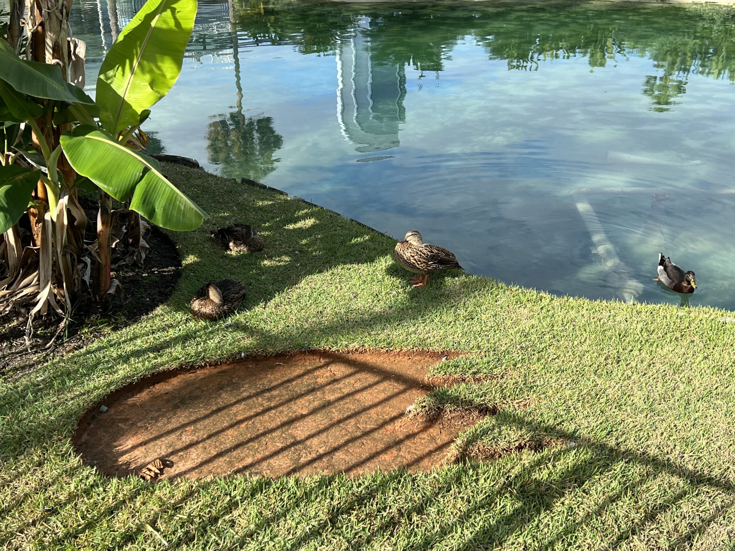 We stopped near Gertie’s to see some Disney ducks taking a morning snooze near one of her footprints.