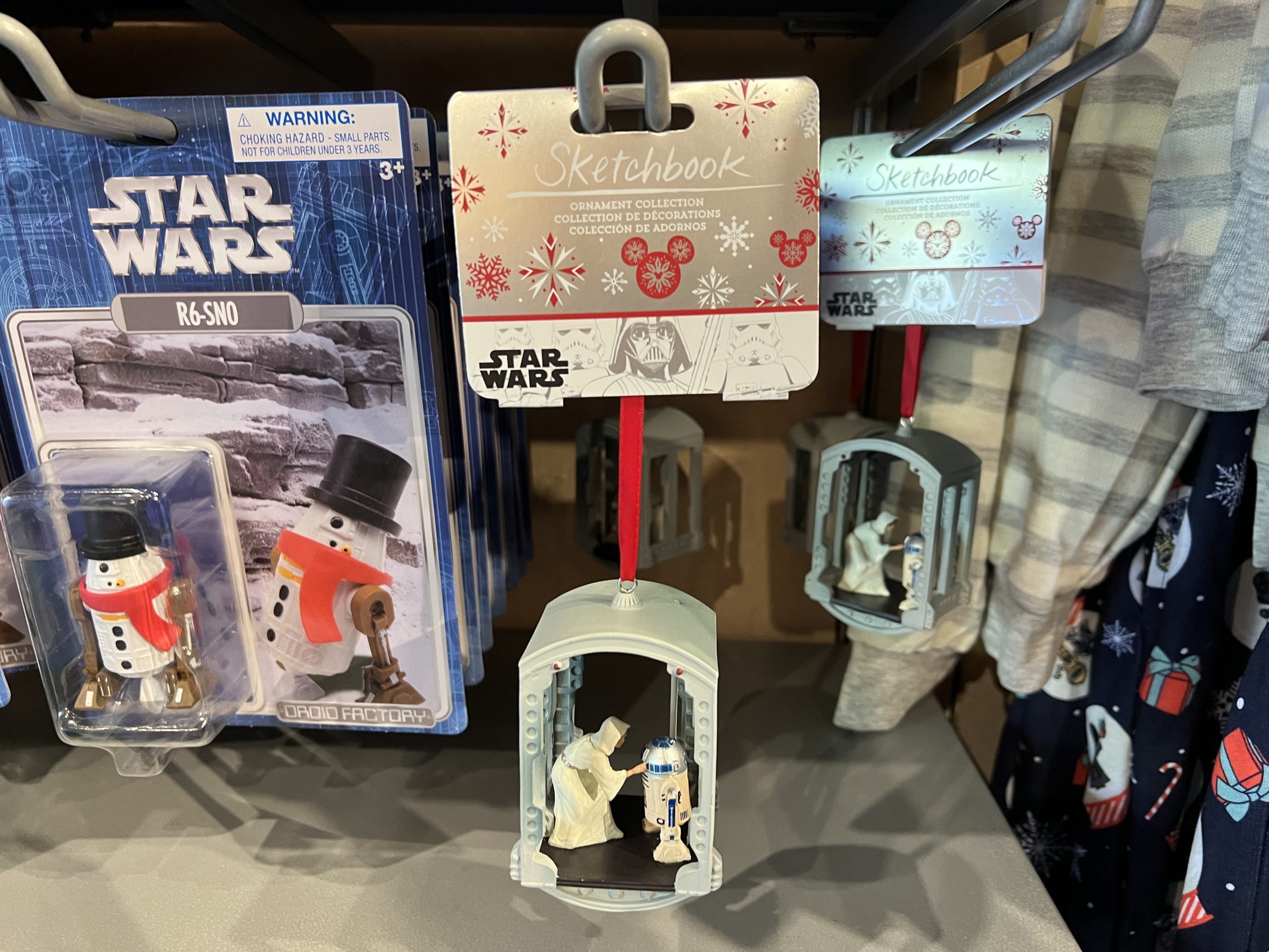 Over at Tatooine Traders, there is a Sketchbook ornament featuring Leia and R2-D2. Peep the snow-very-cute R6-SNO just next door!