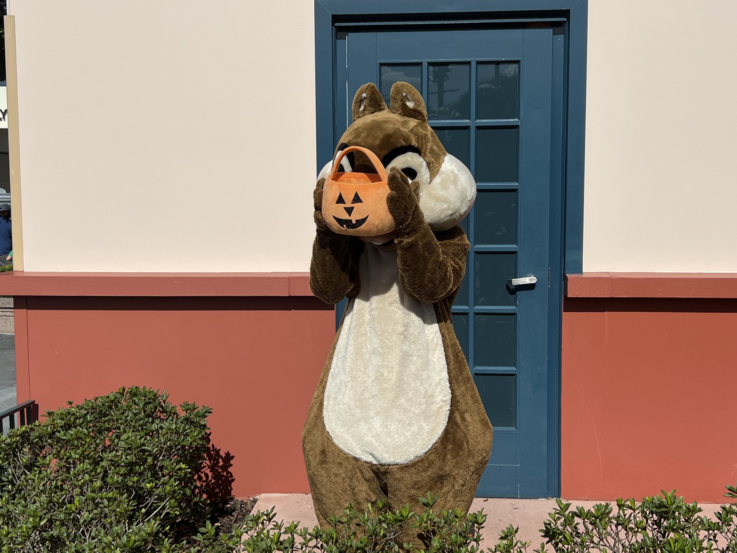 As we were heading out, we spotted Chip’n’Dale getting silly with their trick-or-treat pails. They were asking everyone for acorns!