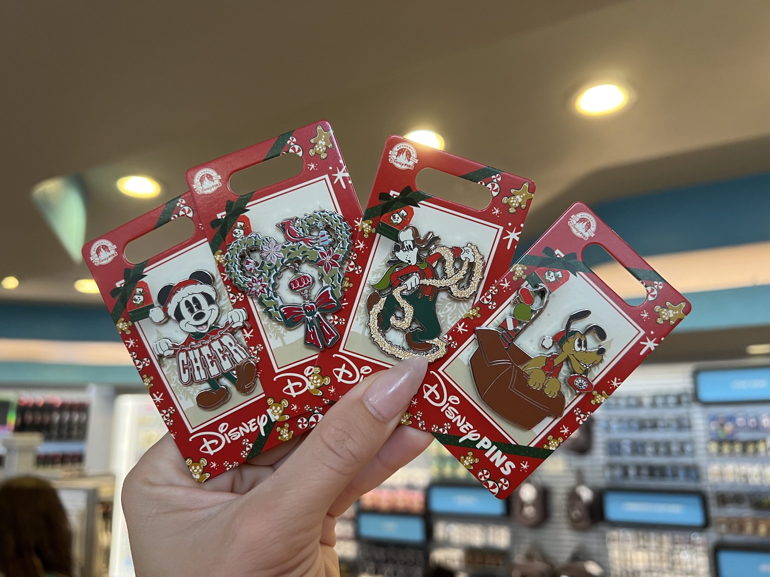 We found a few of the new holiday pins at Pin Traders under Spaceship Earth. Pluto, Mickey, and Goofy are getting ready to deck the halls as it looks like they are unpacking decorations.