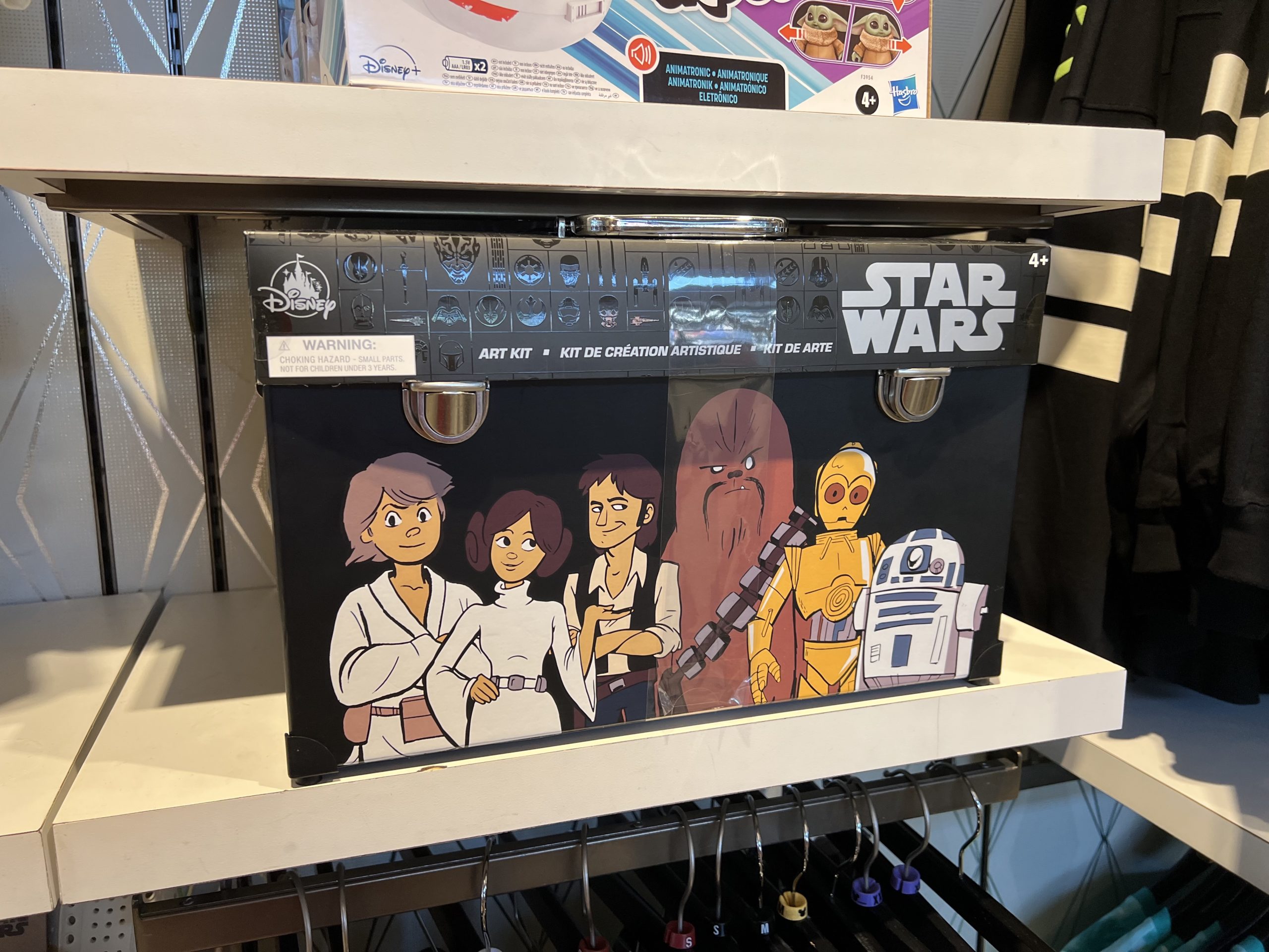 This cute Star Wars art kit is in the Star Wars section of Keystone Clothiers. It comes with markers, pens, and more.