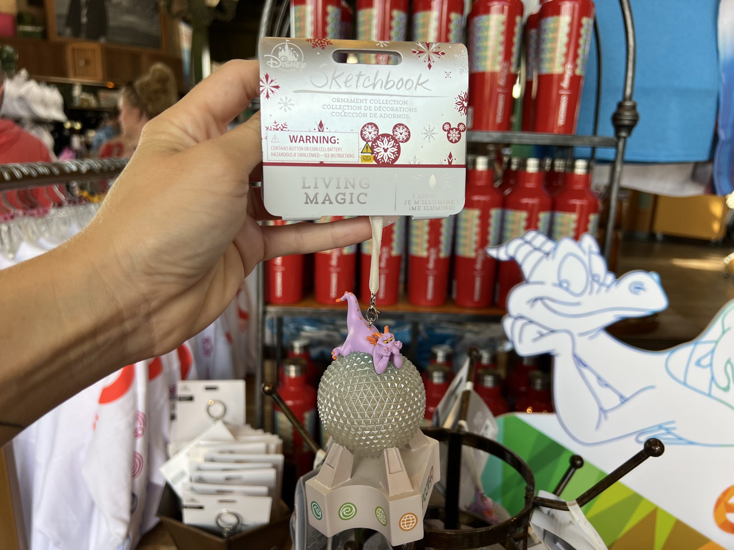 A very cute and miniature light up Figment is on Spaceship Earth for this Sketchbook ornament. It looks just like a miniature version of its larger figurine.