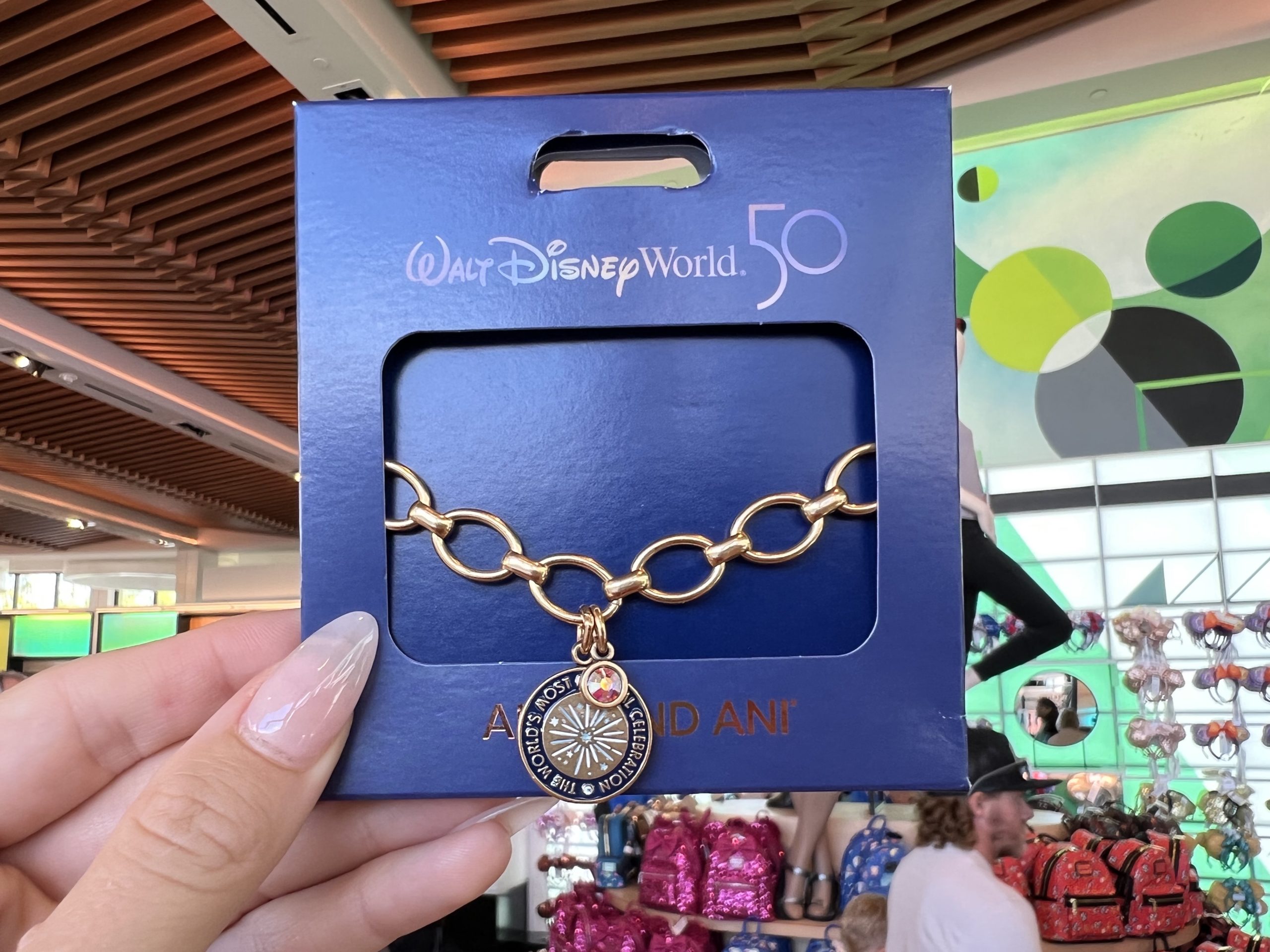 “The World’s Most Magical Celebration” can be read on this new 50th anniversary Alex & Ani bracelet.