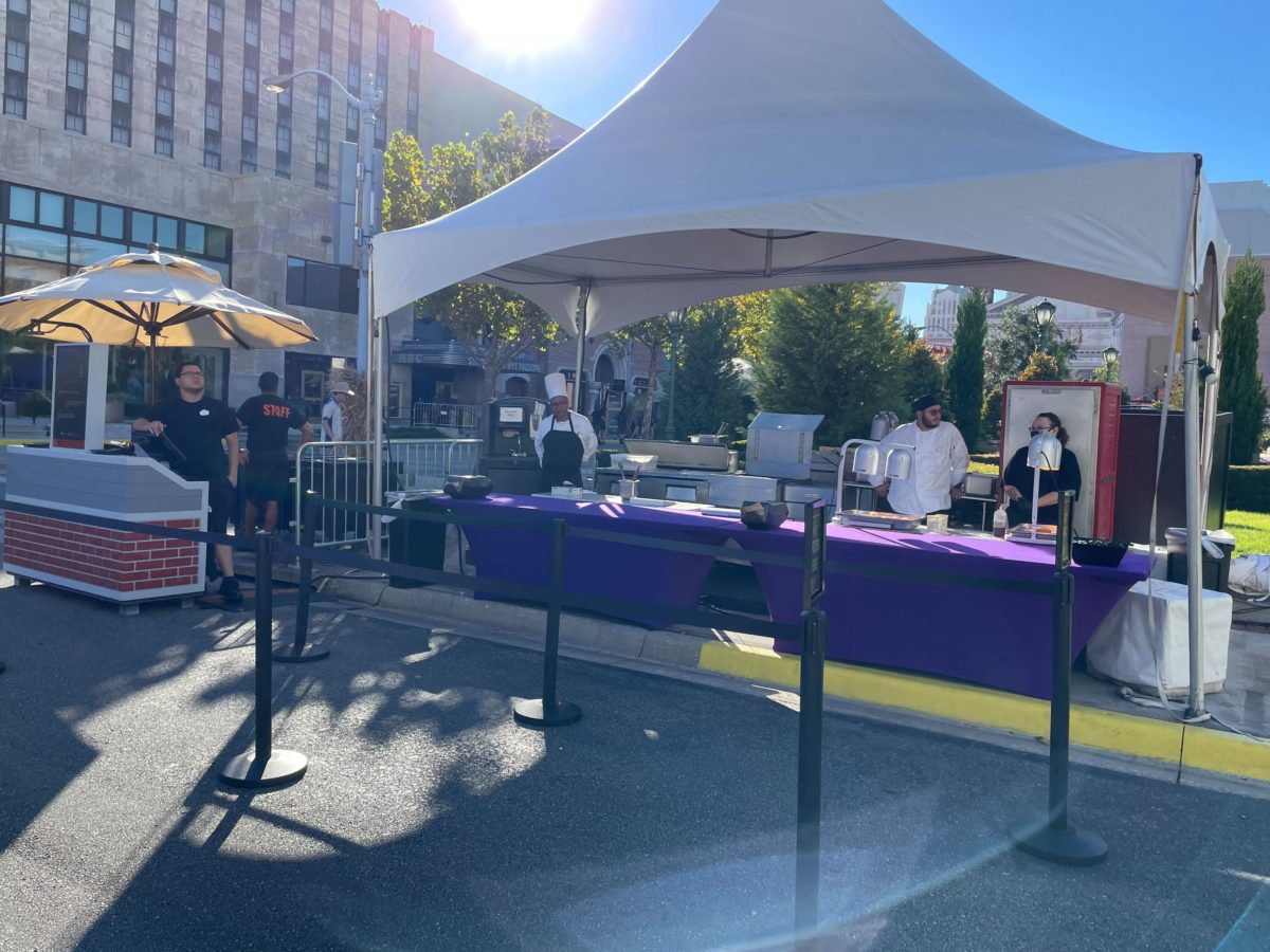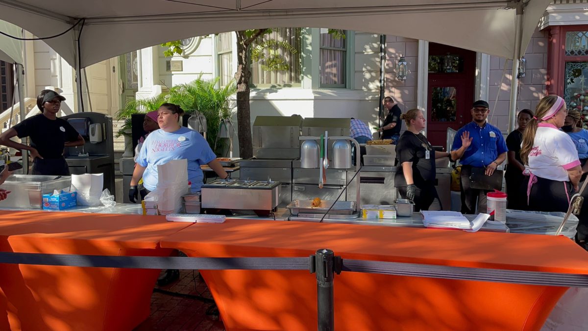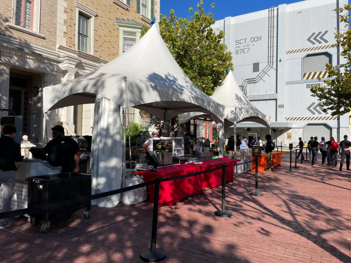 Food! We were very surprised to see food being served at the event so quickly after the hurricane. There may not be facades to the booths, but tents have been put up and food is being prepared. Again, we have to give Universal Team Members a hand for putting this event back together so quickly for tonight.