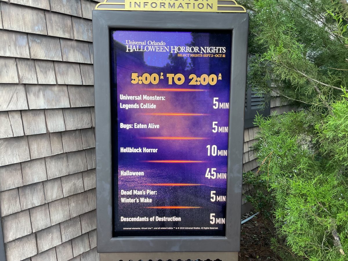 The Horrors of Blumhouse always has a high wait time, so we were excited to find the sign outside saying the wait time was 15 minutes.