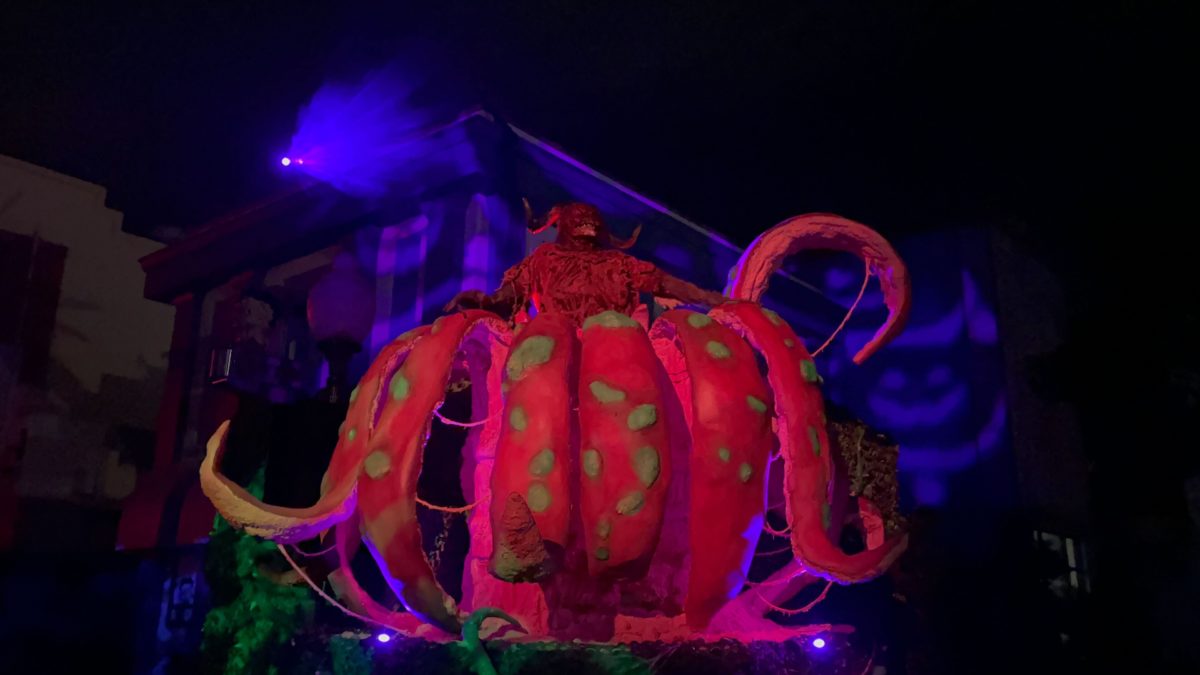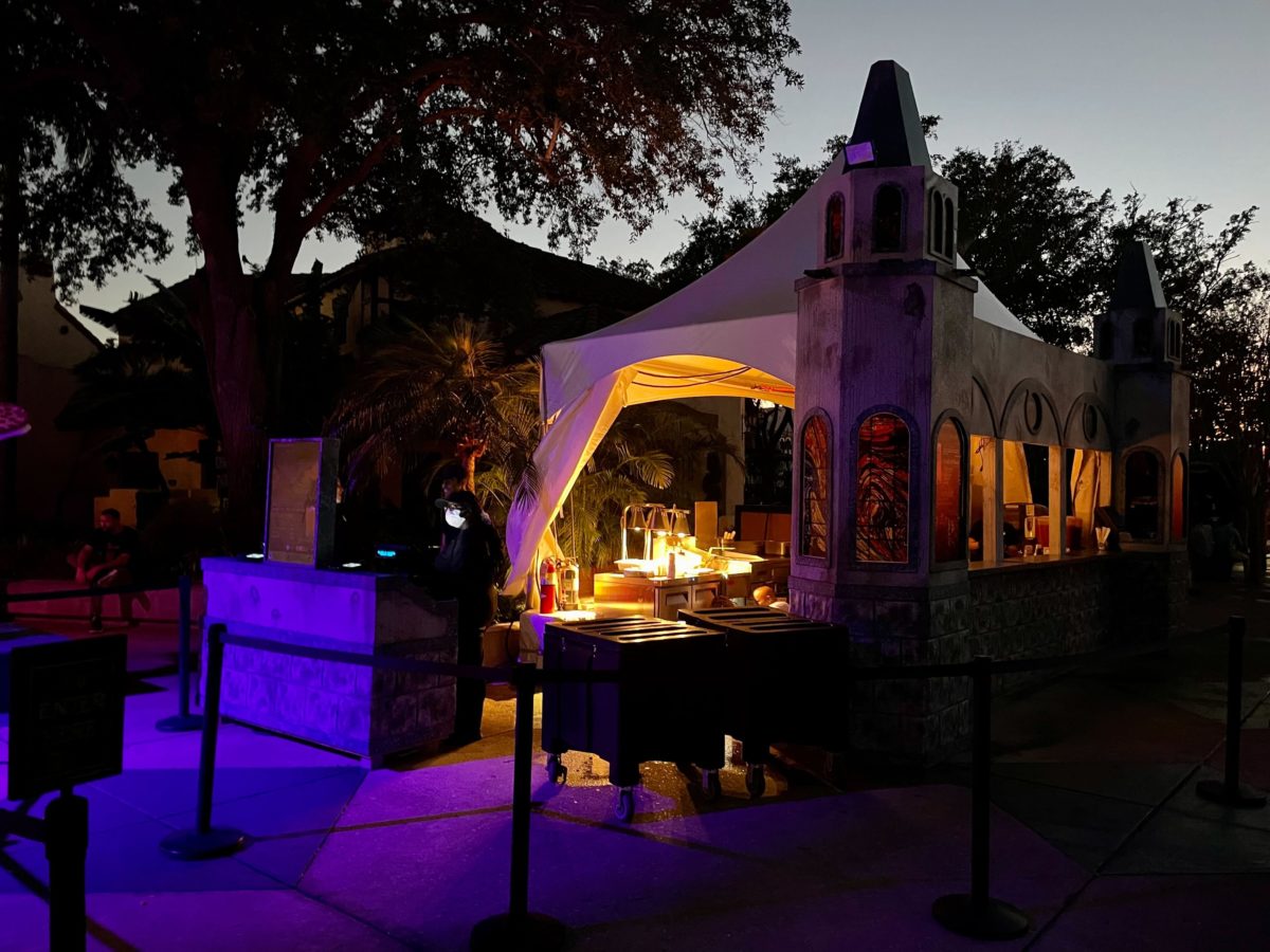 We took a leisurely stroll through the scare zones on our way to get a snack before finishing up the rest of the houses. The Pumpkin Lord was out, but most of the scare zones felt kind of quiet. We assume most of the scare actors from the scare zones were pulled to help out in houses for the night. Many Team Members were dealing with the aftermath of the storm, so we know that the park was probably short staffed. Our thoughts are with all the Team Members impacted by Hurricane Ian.
