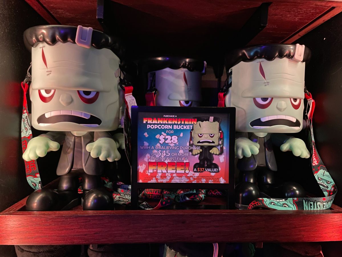 The Frankenstein popcorn bucket is now part of a promotional deal. If you make a qualifying purchase of $45 or more, you can get the Frankenstein popcorn bucket for $28. Just a reminder that these were accidentally priced at $25 during their original release and then raised up to $38.