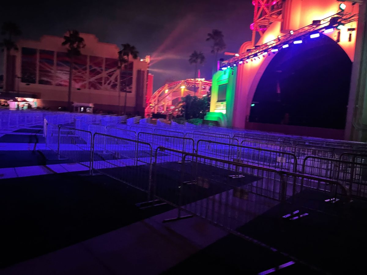 As part of the hurricane prep, the banners and medallion were removed from the arch. There hasn’t been much time to put the park back together after the storm, but we appreciate everyone who has helped out to make the event happen tonight.