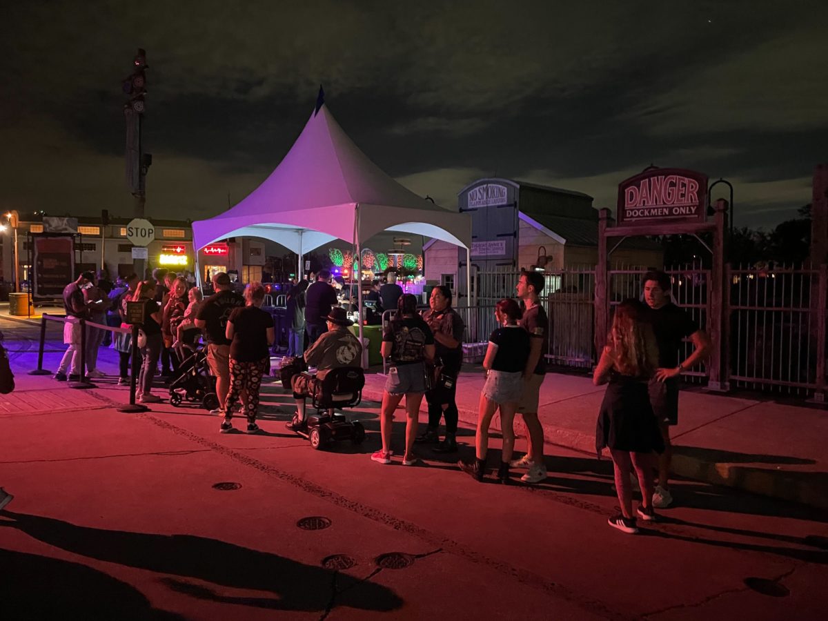 Thankfully, there seemed to be very little damage to the park. We know there were a lot of people working behind the scenes to clean things up, too. Not much was open at this point in the night, but guests were allowed to line up for houses. We got into line for Halloween with a wait time of 30 minutes. We entered the house around 6 PM and had a great time.