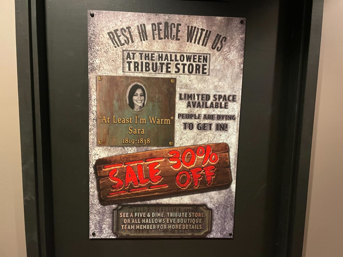 The Tribute Store plaques are now discounted. The Halloween Horror Nights Tribute Store mausoleum plaques can be purchased for 30% off. Find out more info on the plaques here.