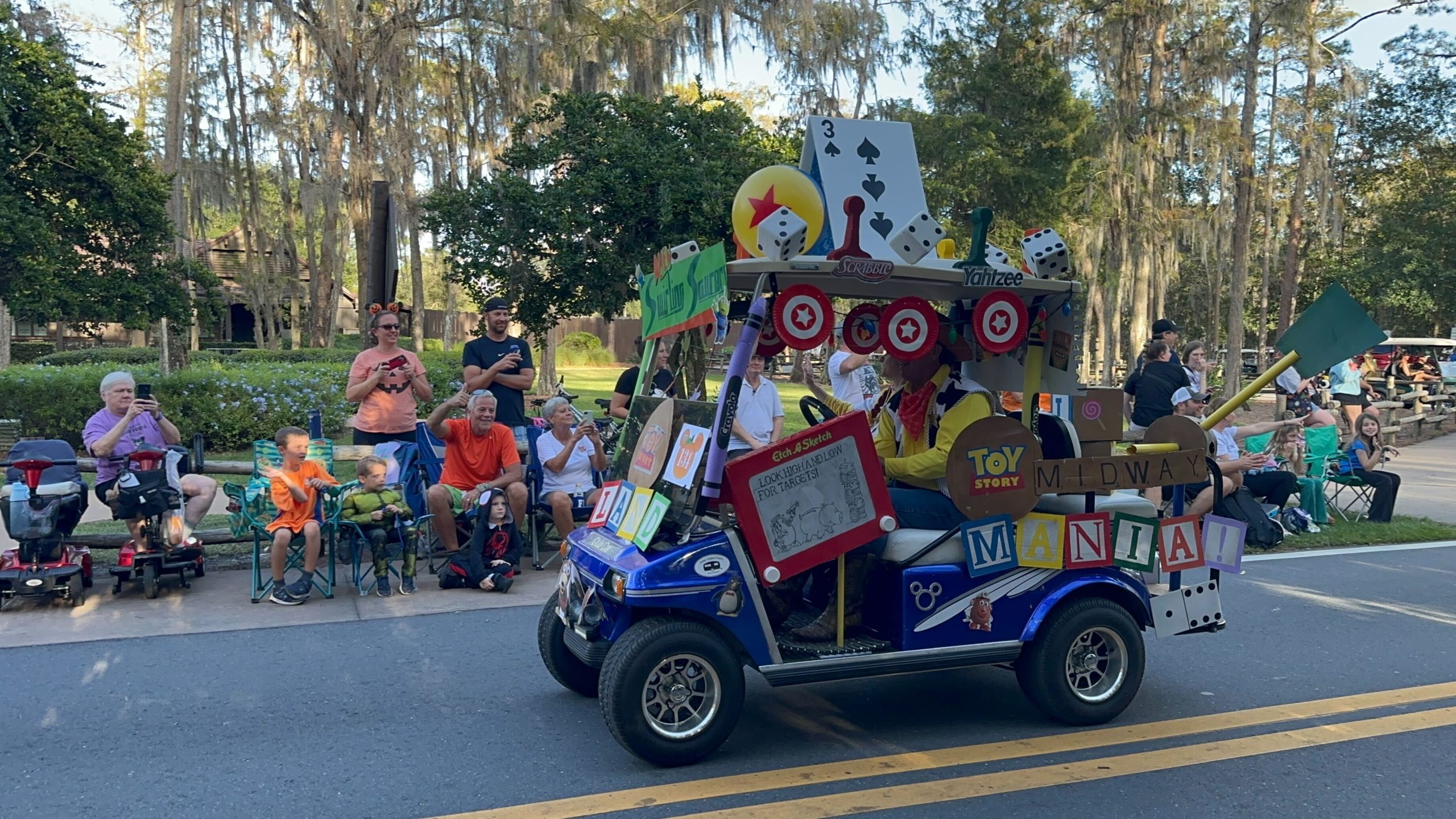 Yesterday, we stopped to watch the 2022 Halloween golf cart parade at Disney’s Fort Wilderness before our dinner reservations. The parade is an annual tradition where guests renting a golf cart decorate them with (often elaborate and Disney) Halloween “costumes.”
