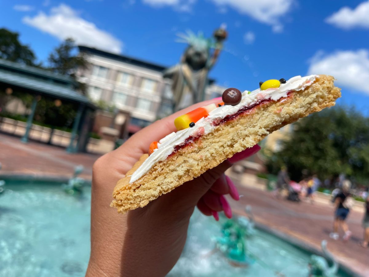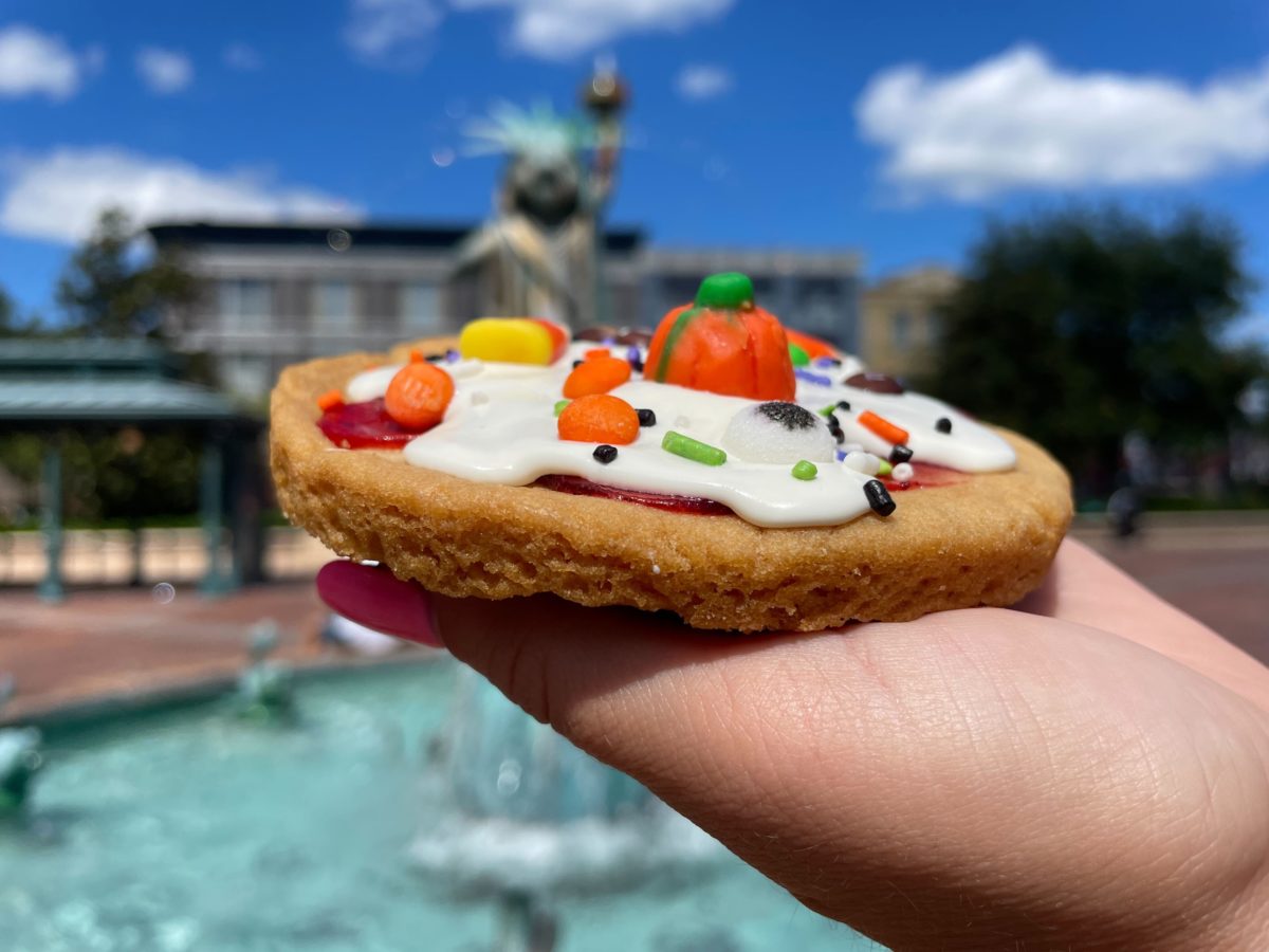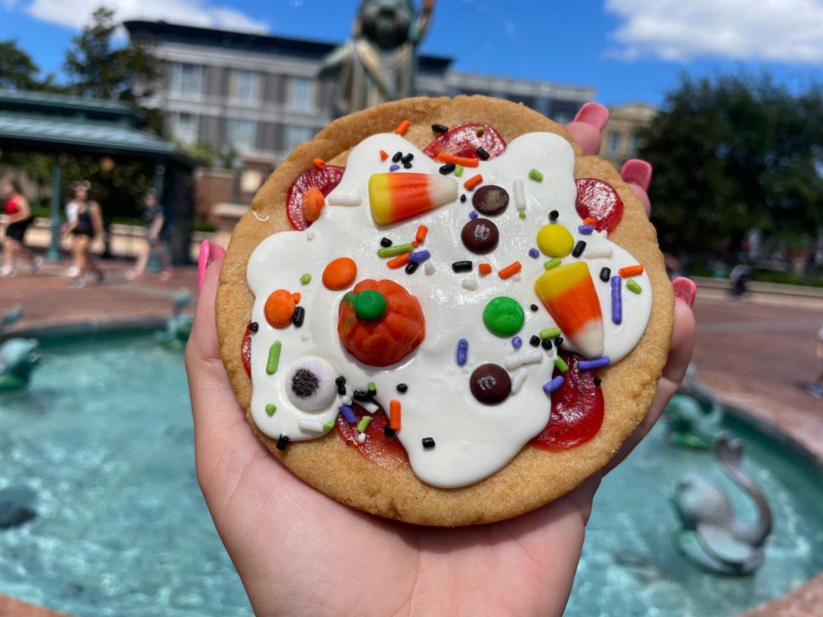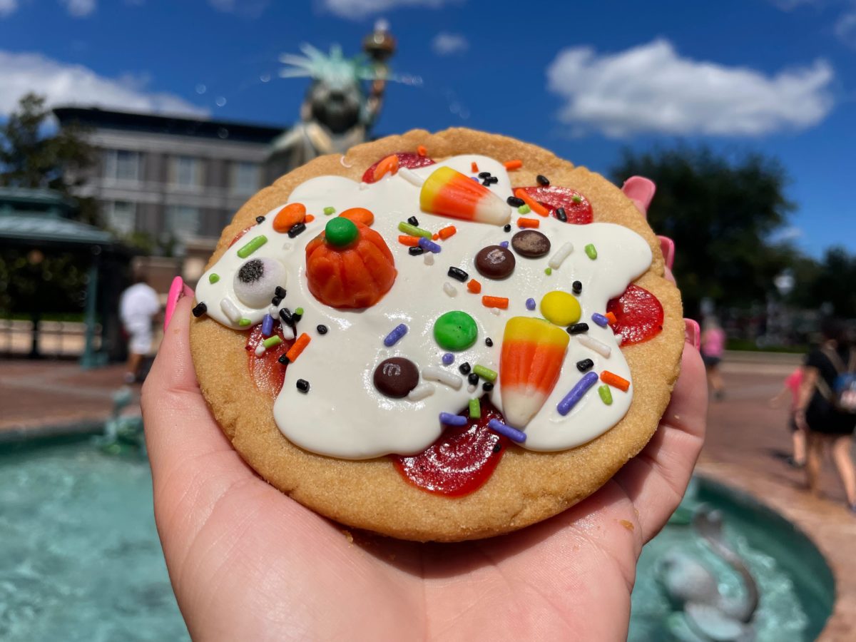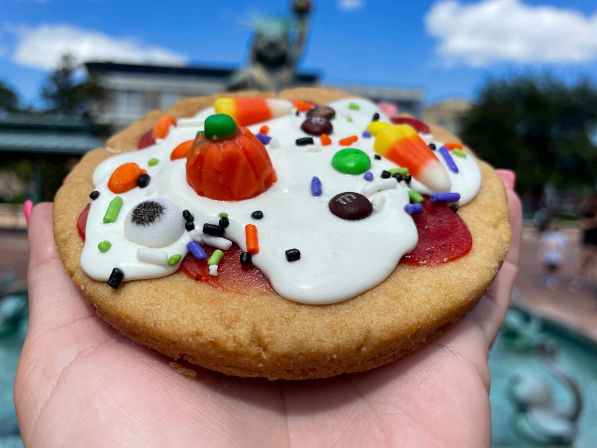PizzeRizzo at Disney’s Hollywood Studios has a unique new Halloween treat this year: Halloween Candy Cookie Pizza. This “pizza” is really just a sugar cookie with many toppings.