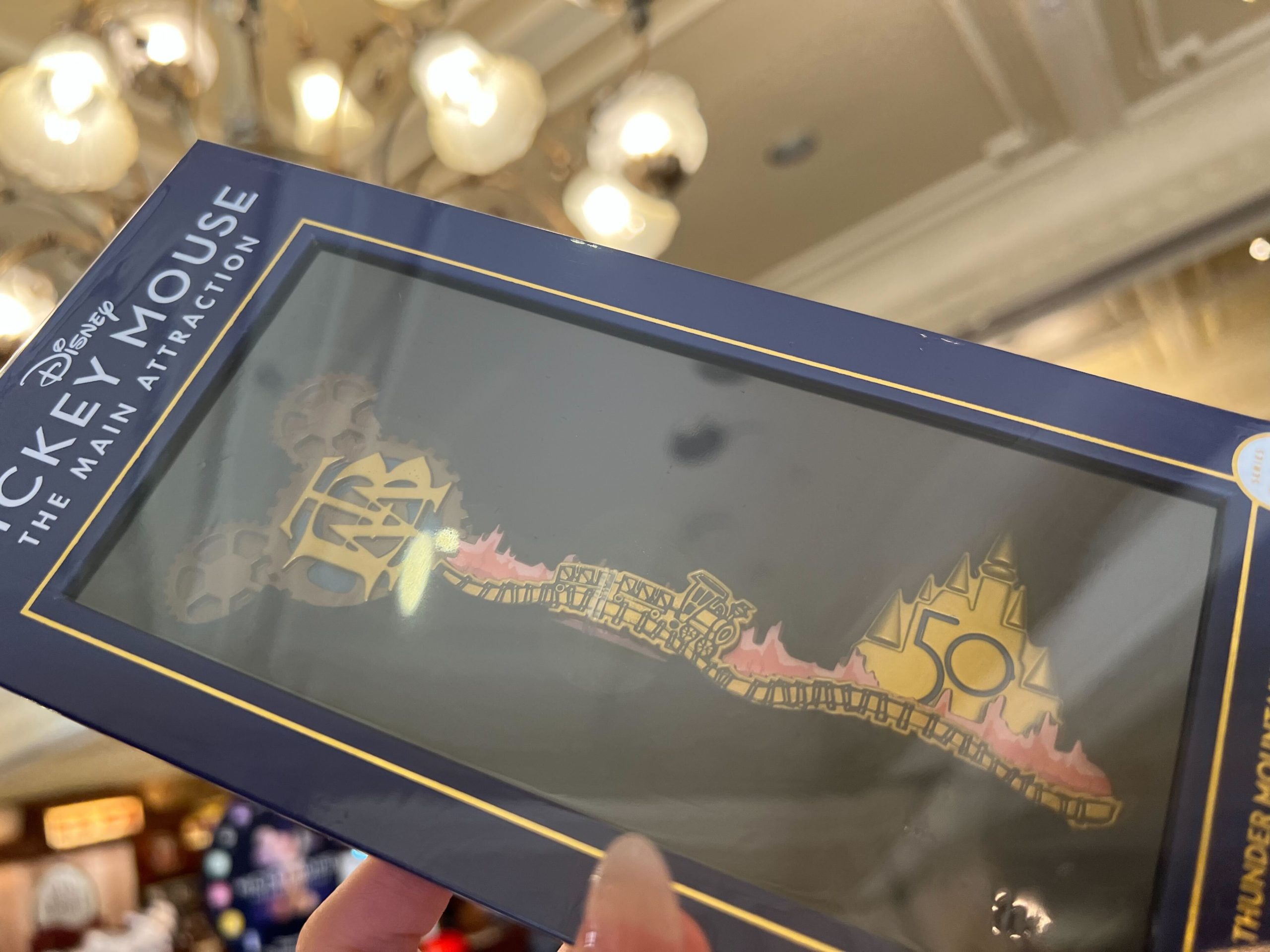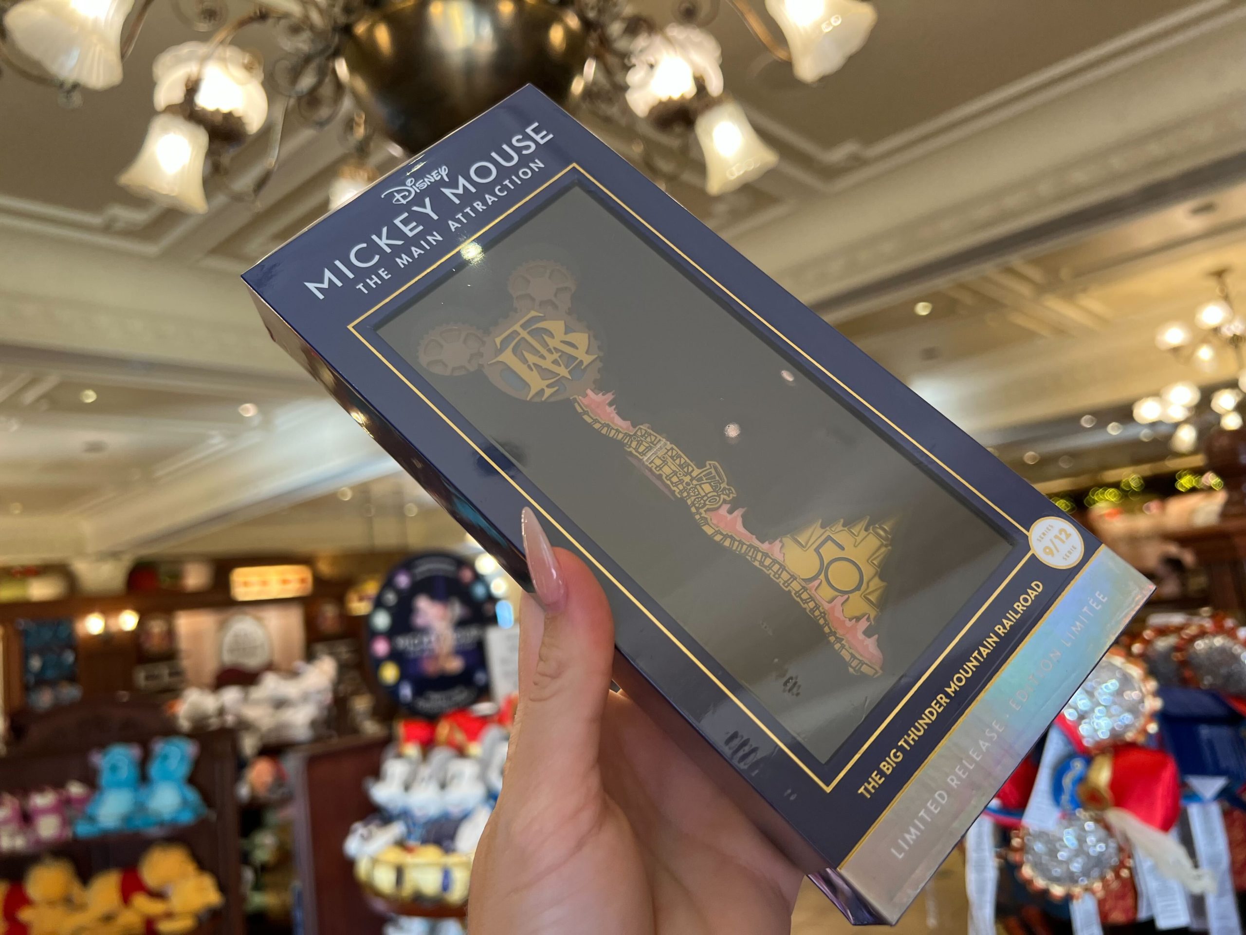 Not to be outdone, this collectible key features the Big Thunder Mountain mine train rumbling along its track right down the center of the key stem, ending with the Walt Disney World 50th castle logo in gold with desert mountains in the forefront.