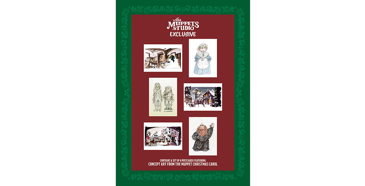 This set of six postcards features three pieces of production design artwork and three costume sketches from “The Muppet Christmas Carol.” The back of each postcard includes room to write a greeting, address, and stamp. The detailed 5-by-7 inch prints could also be framed as artwork.