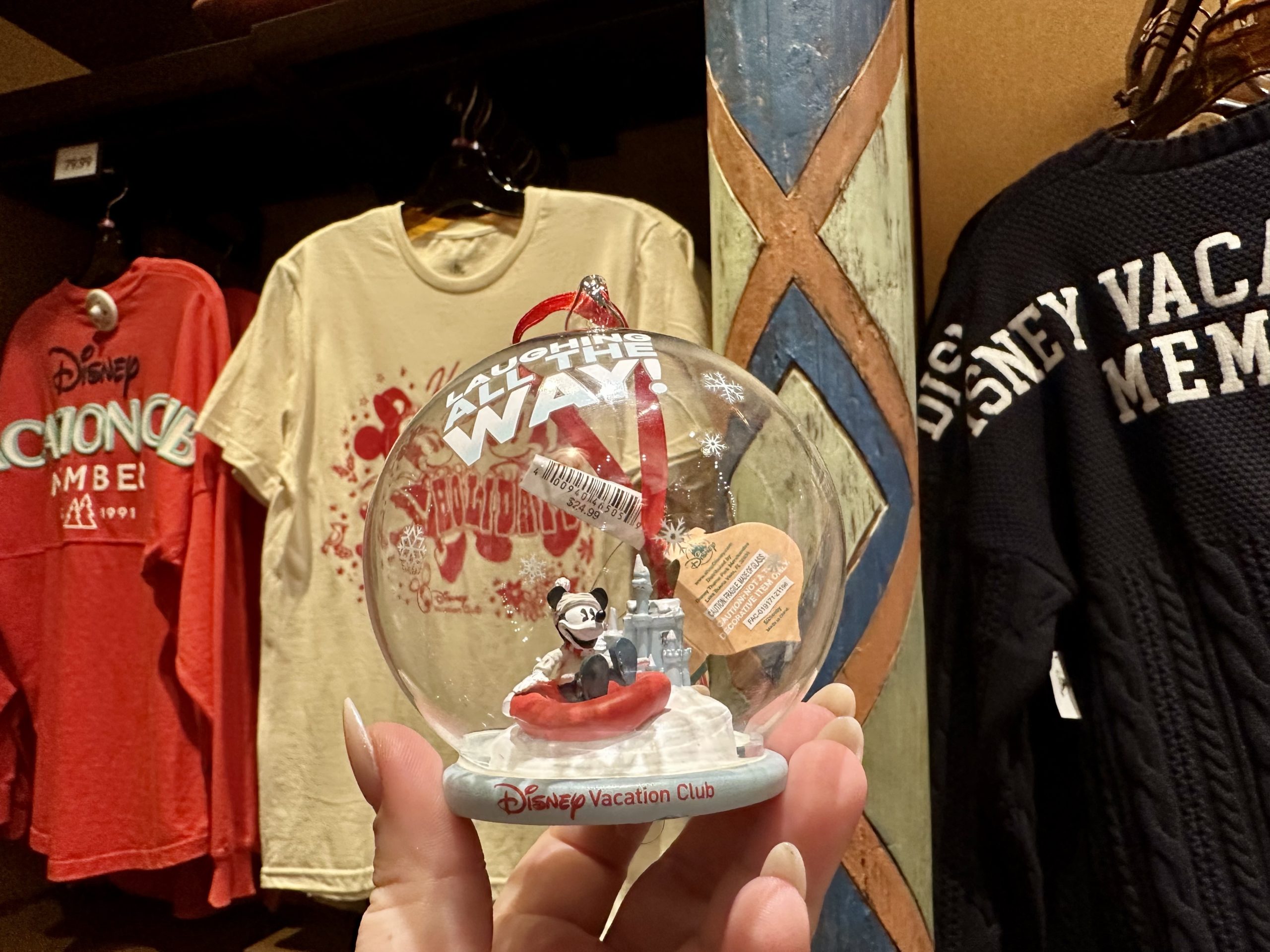 A “Laughing All The Way,” Disney Vacation Club light-up ornament.