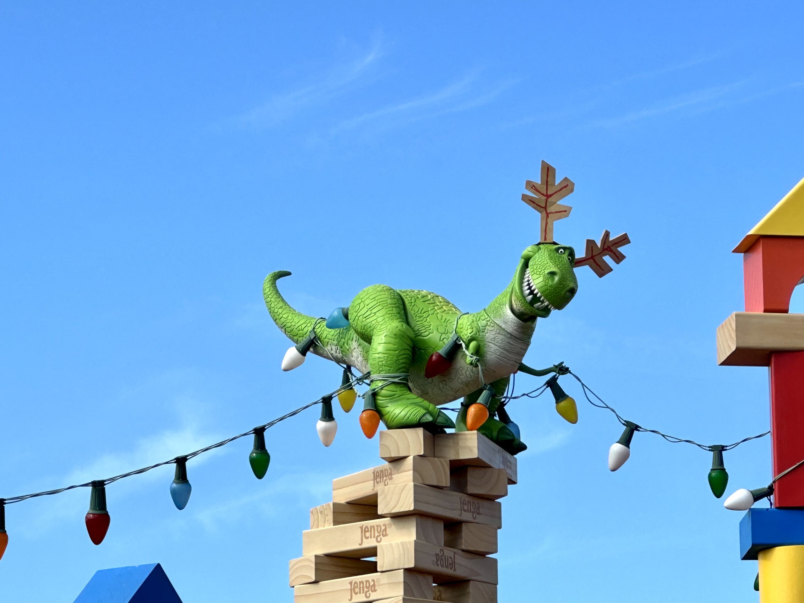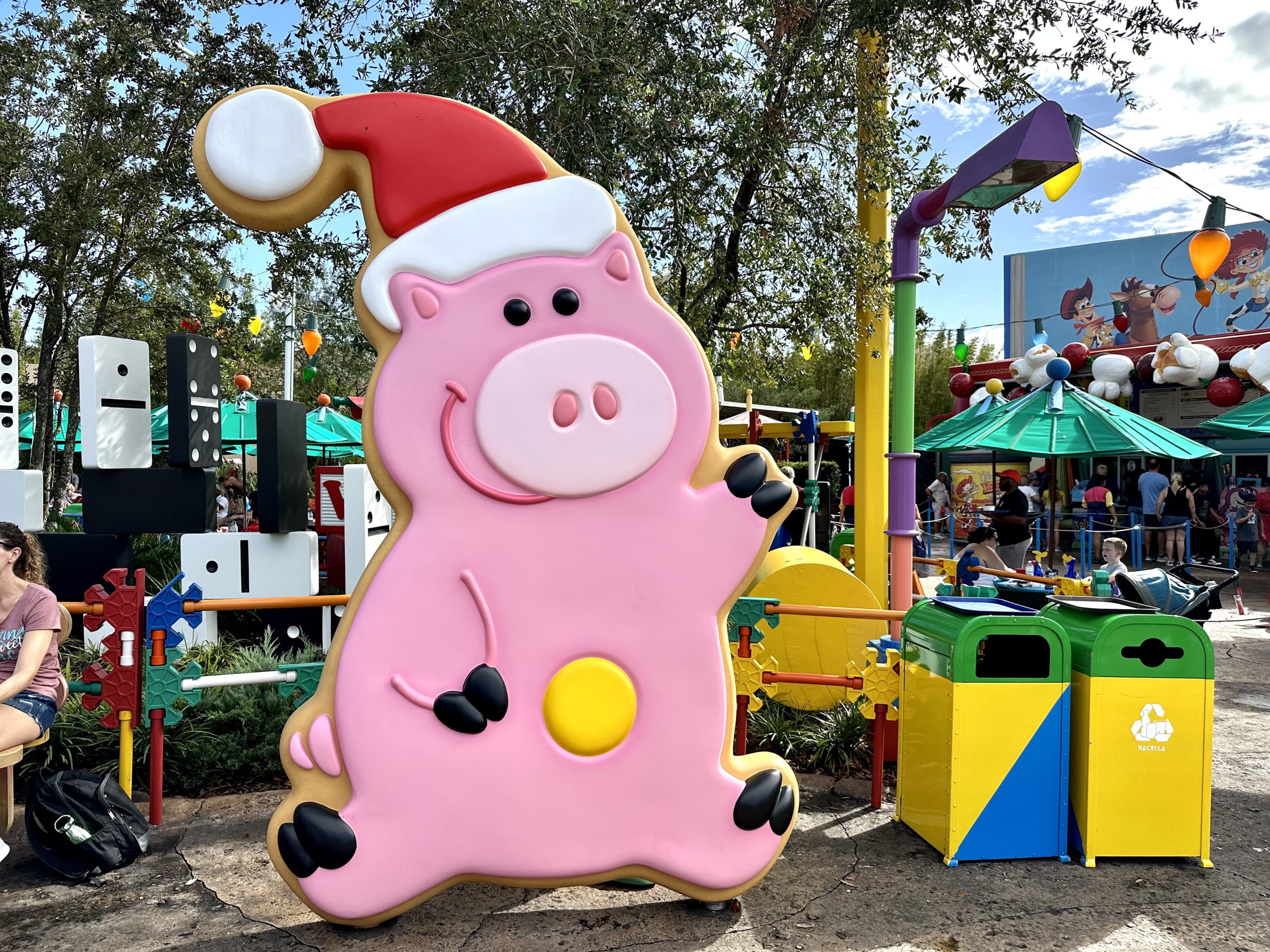 Howdy, partner! Woody is dressed up in his scarf and ready for the holidays. We spotted Christmas decorations all around Toy Story Land.