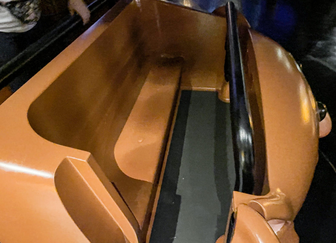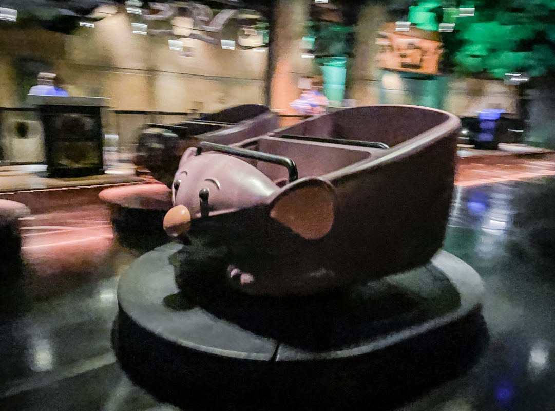 Remy’s Ratatouille Adventure has a small change. The ride vehicle seats once had dividers, separating the bench into three seats. We noticed that some of the vehicles no longer have the dividers. It’s unknown if all the vehicles will be modified to a solitary benchh, or if some will keep the dividers.