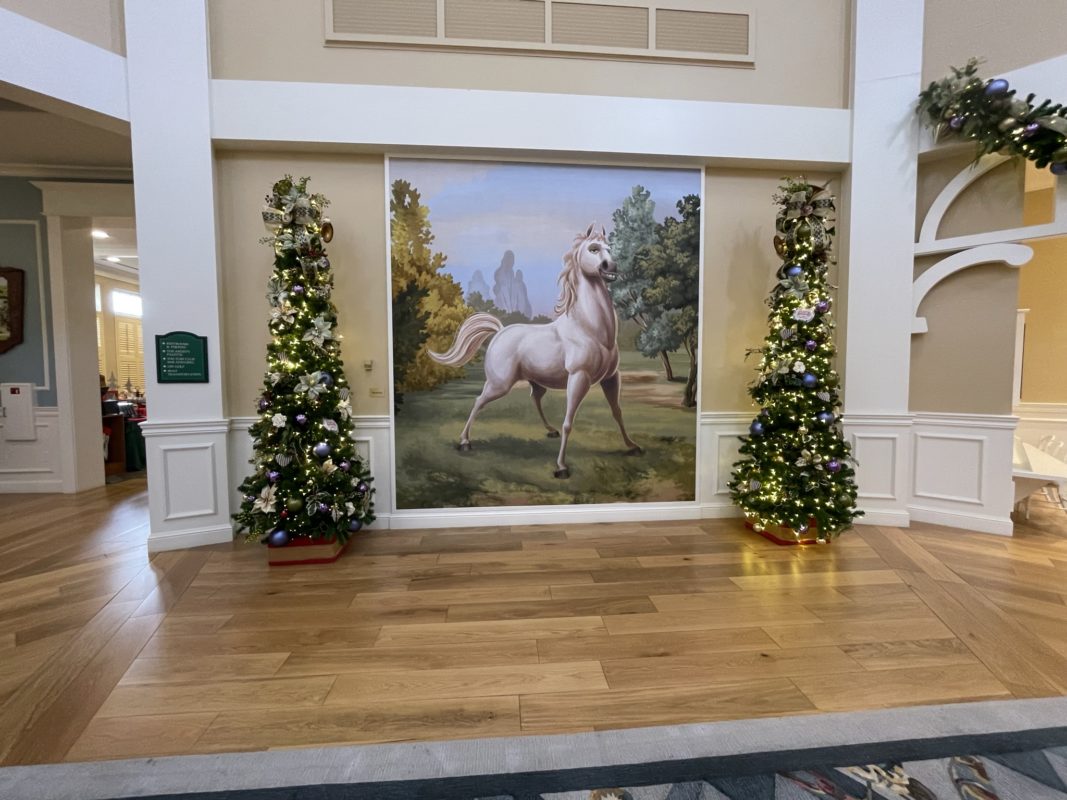 We decided to stop over at Disney’s Saratoga Springs Resort to take in all their Christmas decor. They don’t have everything up quite yet, but they do have a few trees and strands of garland hung.