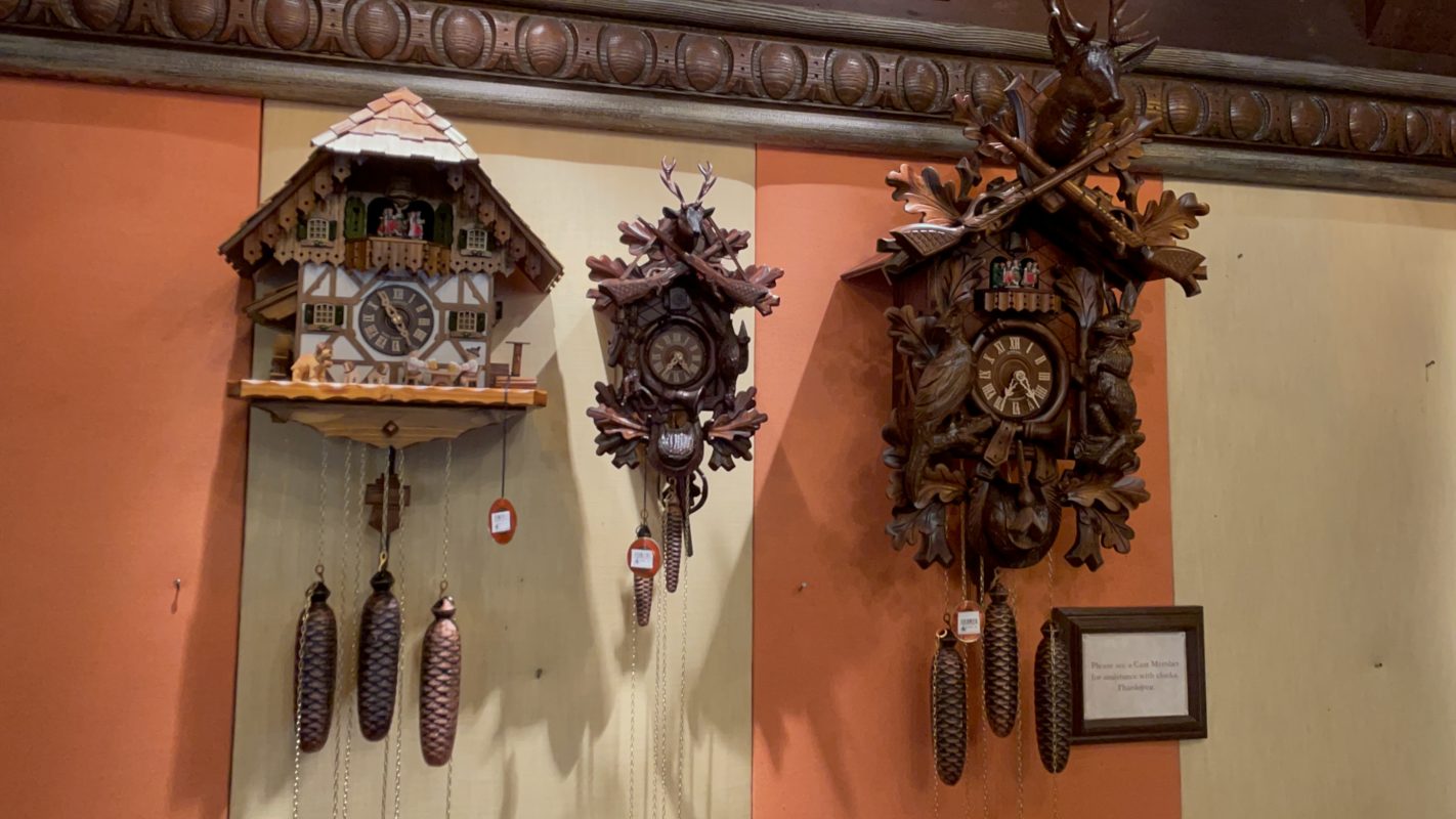 Before its closure, this wall was filled with cuckoo clocks. They have since sold the majority of them, and are hoping to get more.
