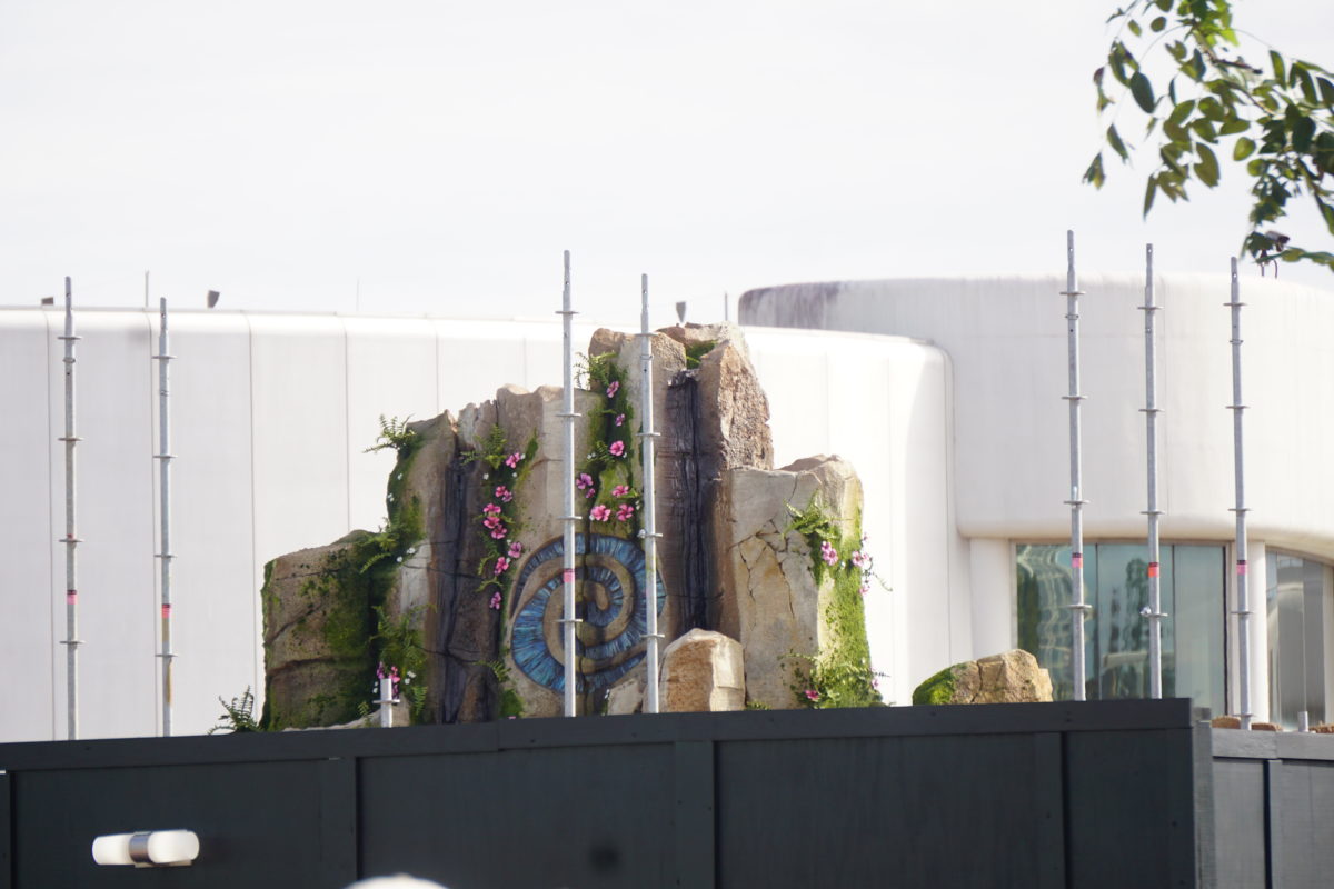We can see the top of Journey of Water Inspired by “Moana” a little bit clearer now that some scaffolding has been removed.