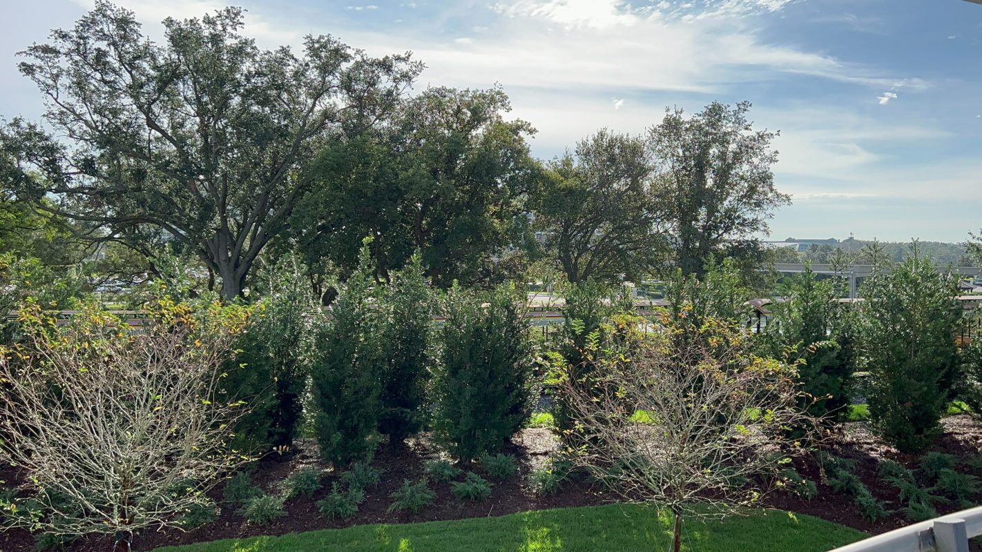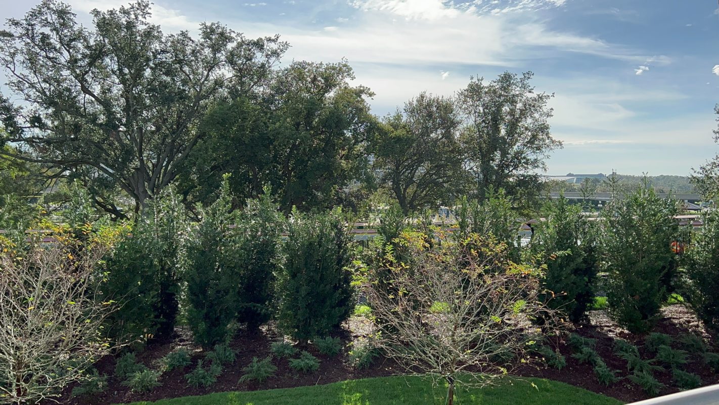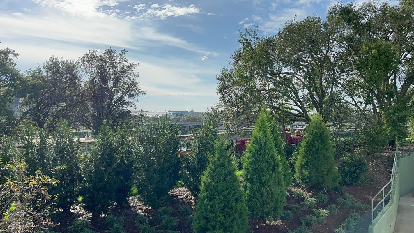 If you look to the left and just below the monorail tracks, you can see some of the passenger cars.