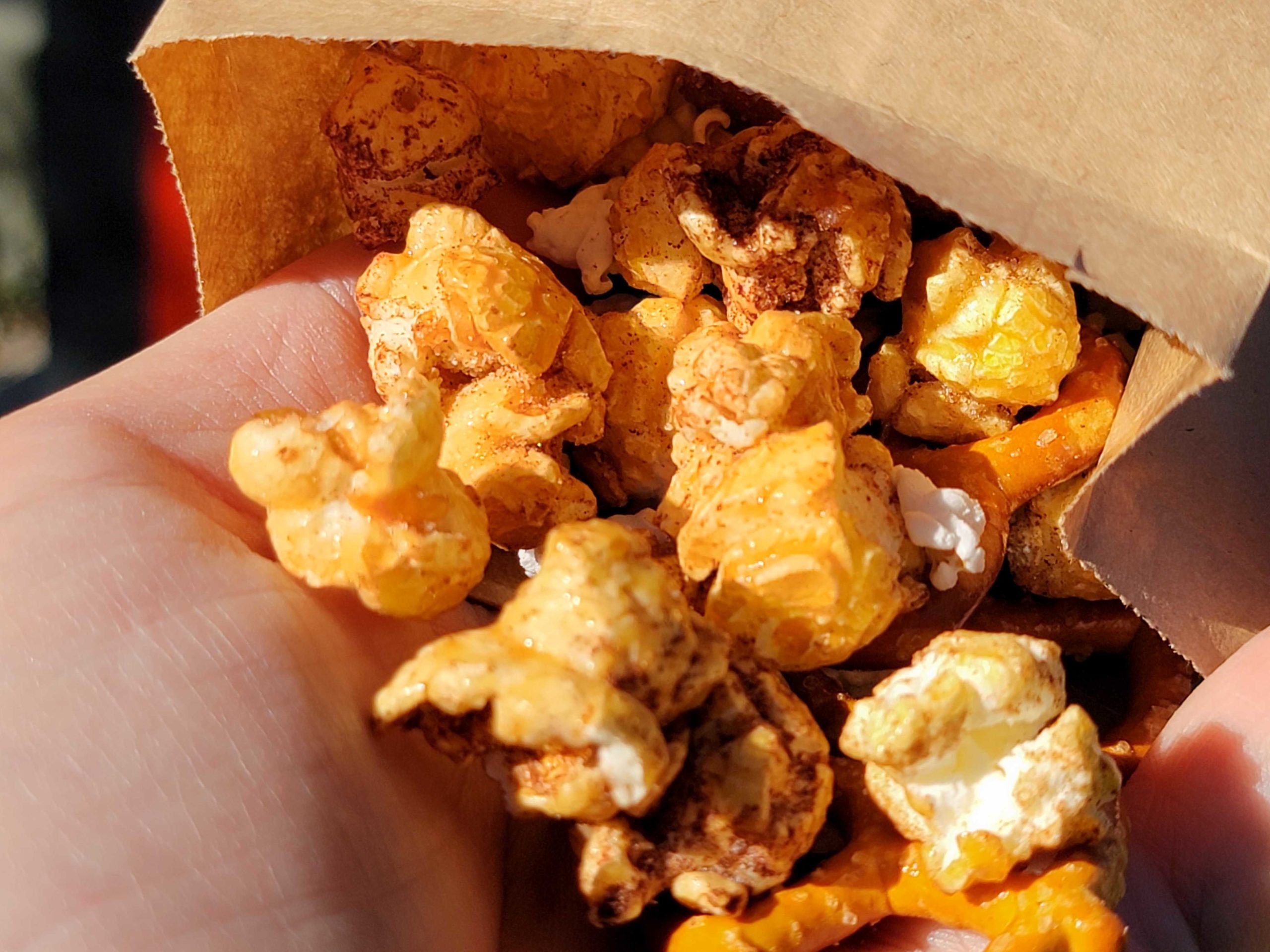 This isn’t the snack-by-the-piece popcorn you might eat at a suspenseful movie. This is a handful-at-a-time mix that satisfies the need for something unique and interesting in a sea of plain gingerbread and peppermint offerings at Disneyland Resort.