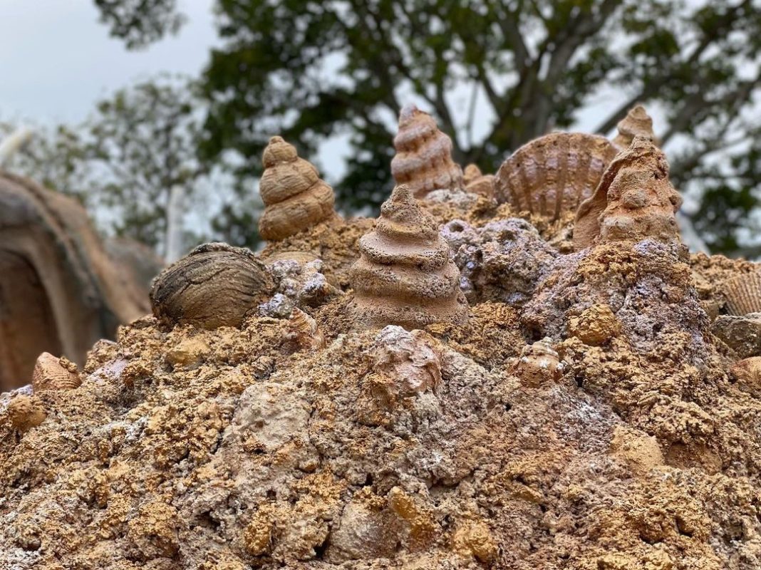 Shells and other landscaping create a sea-like environment.