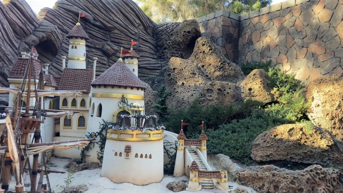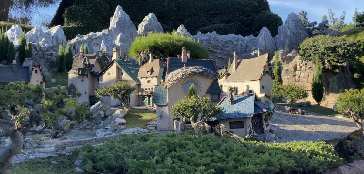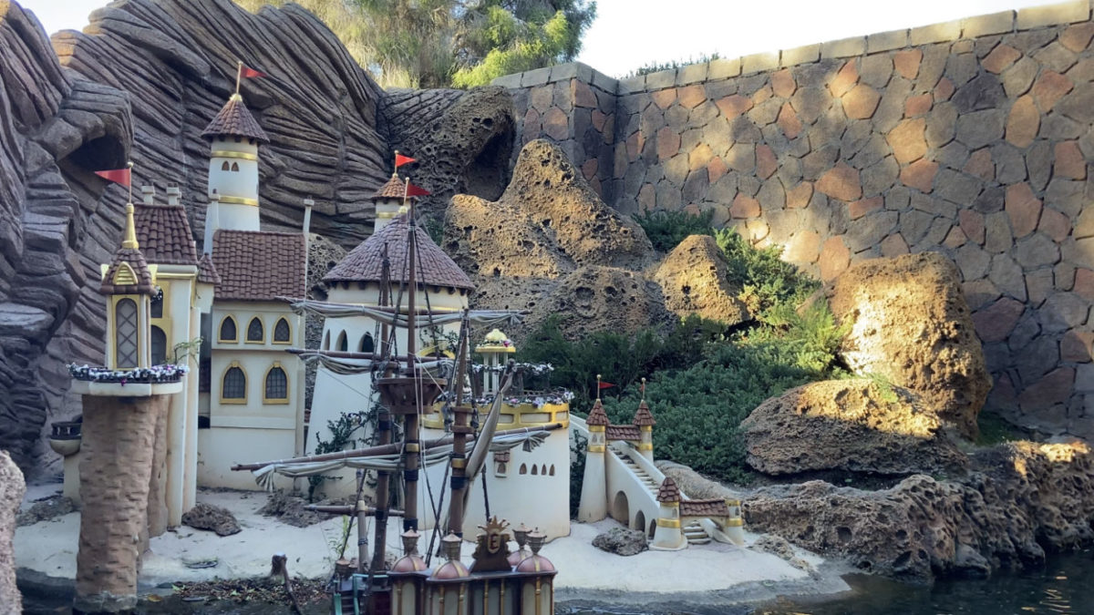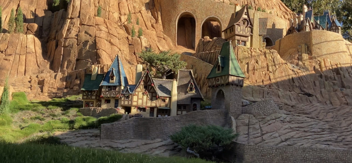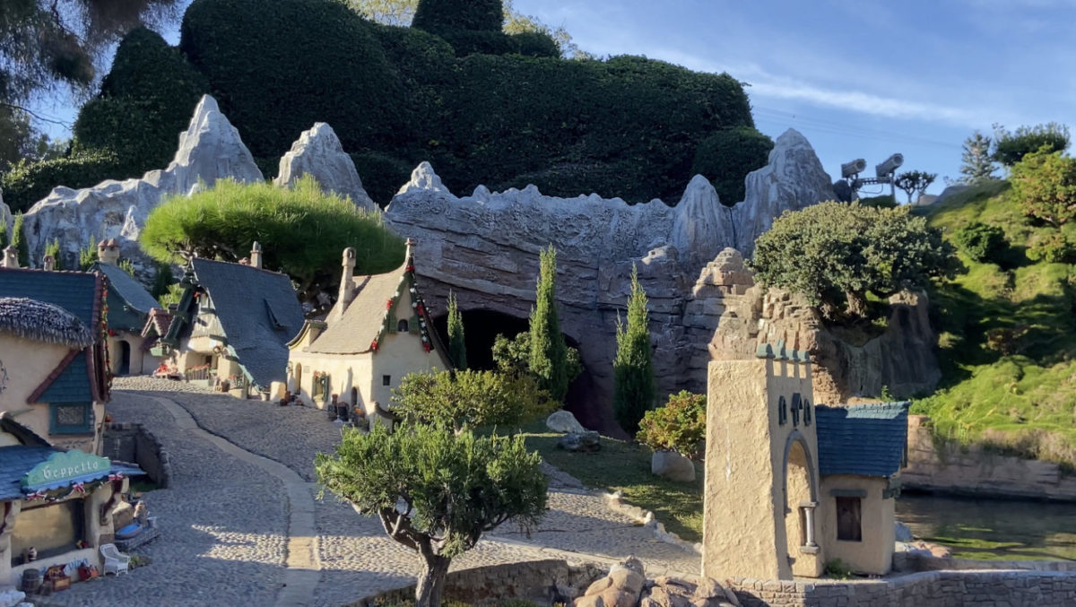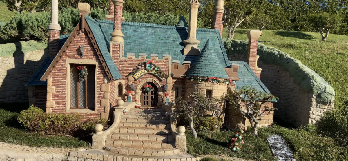 The miniature scenes of Storybook Land Canal Boots in Disneyland have been decorated for the holidays.
