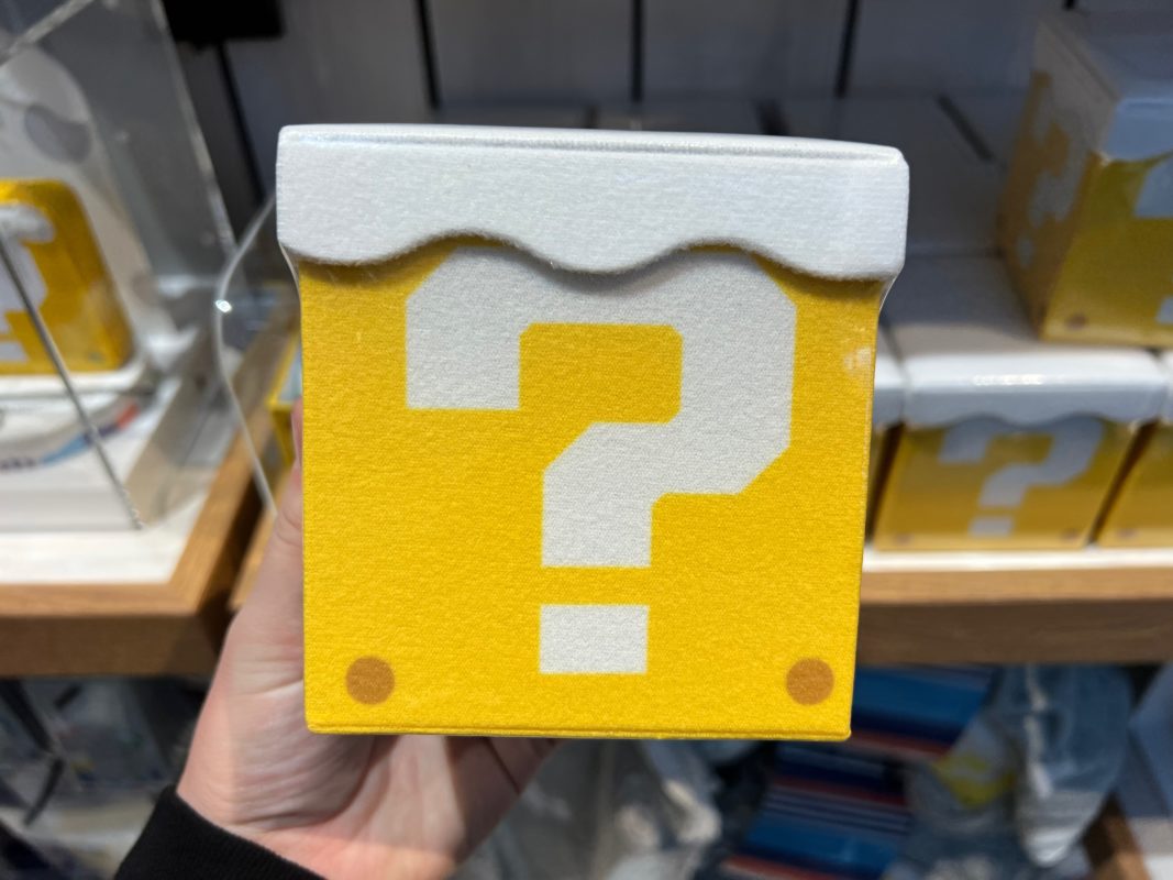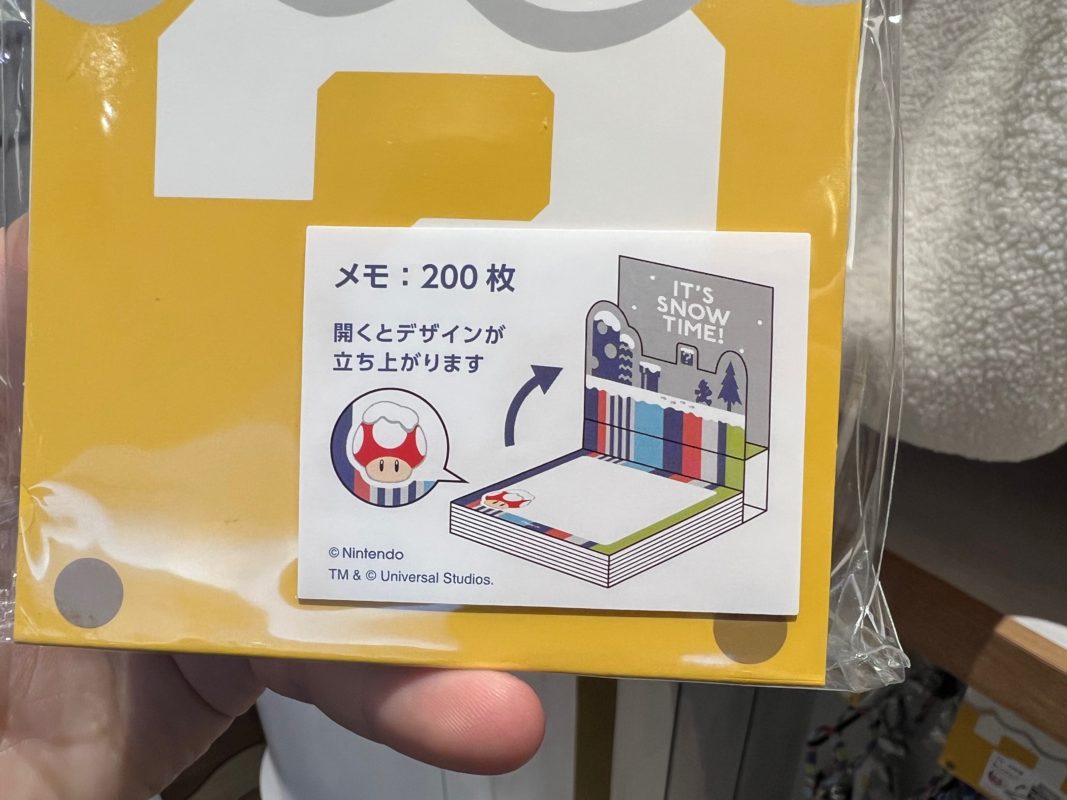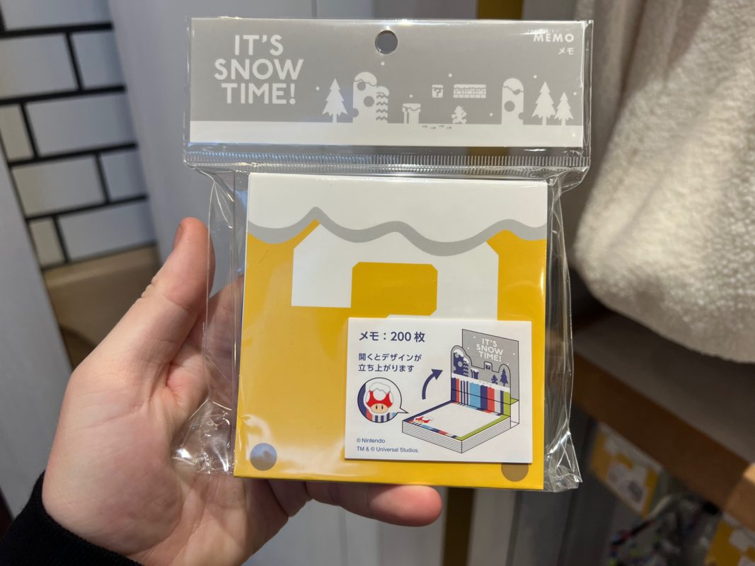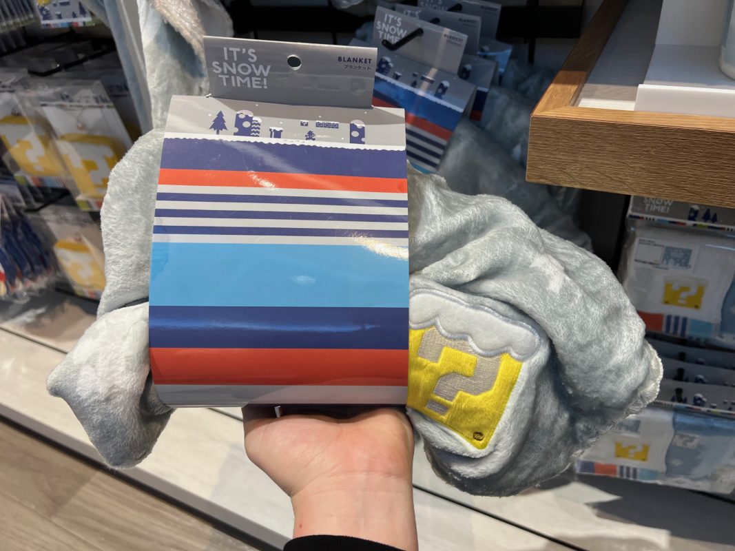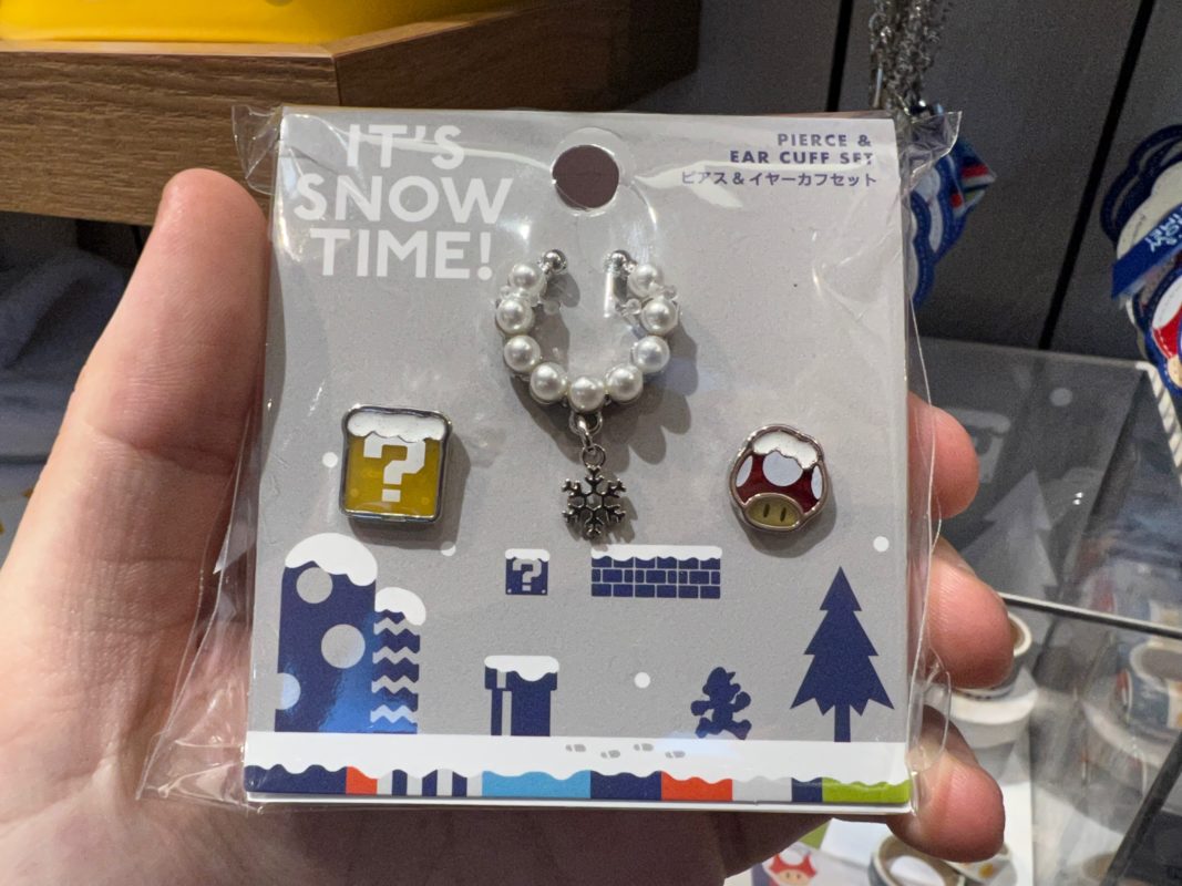 While not really connected to the holiday festivities over in Super Nintendo World, the Mario Store near the front of Universal Studios Japan is chock full of its own holiday line! Themed to a snowfall in the Mushroom Kingdom, snow-topped ? Blocks and Super Mushrooms abound in the new “It’s Snow Time!” merchandise.