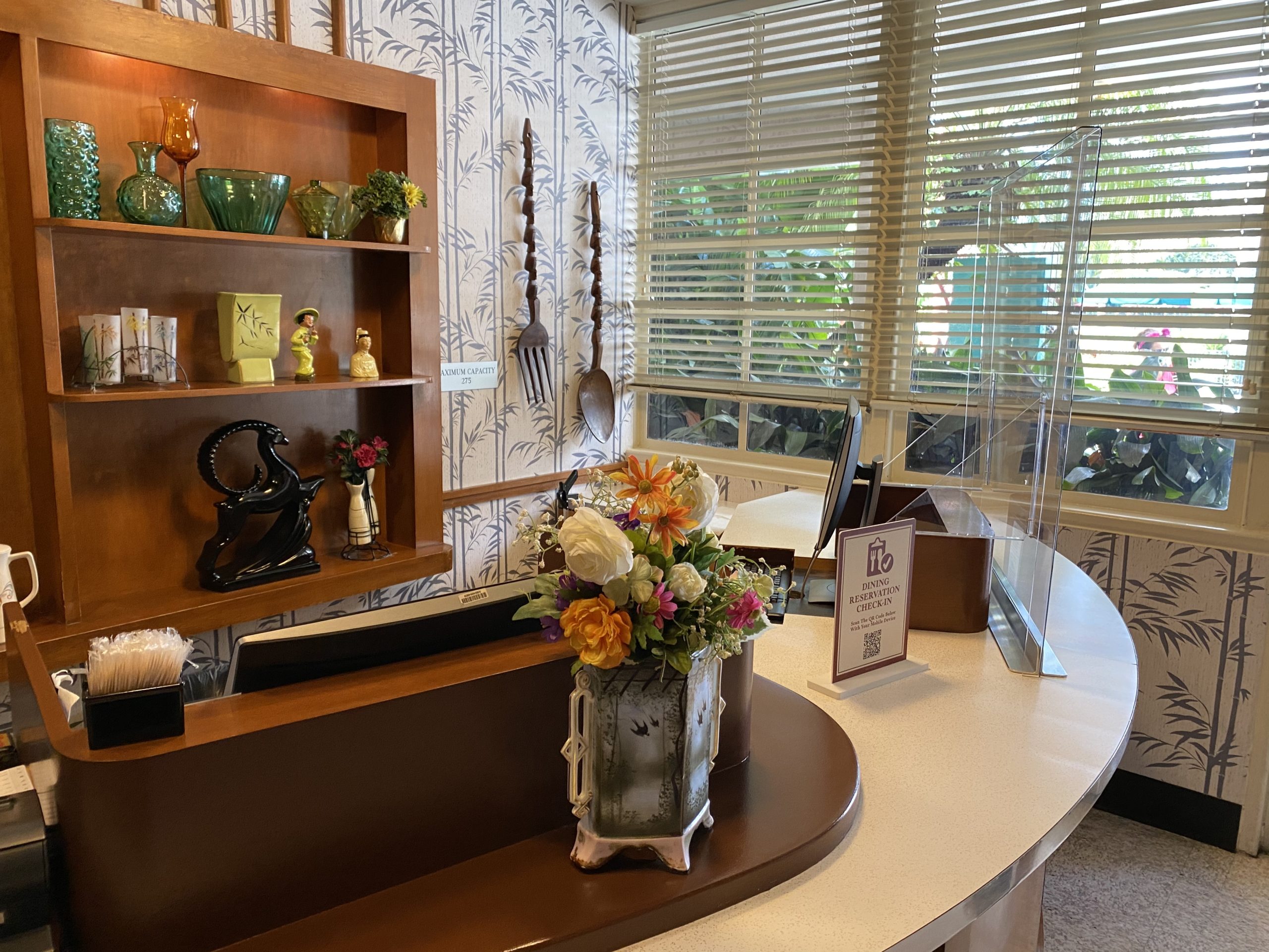 50s Prime Time Café brings you into a midcentury home to eat “Mom’s home cooking.” The dark woods, pastel accents, and geometric designs of the era are heavily present.