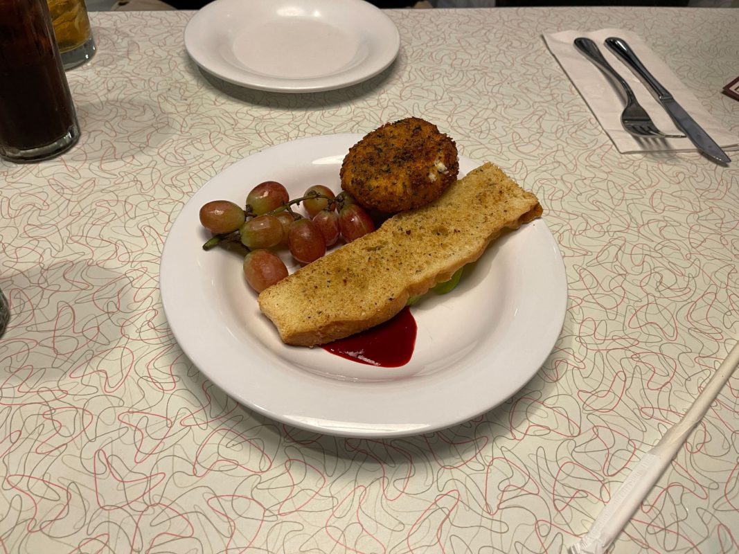 The cheese isn’t the mozzarella you are used to. This is more like a ricotta, so no stretch, but it’s well seasoned and delicious. Plenty for our table of three to share so we can double up on desserts.