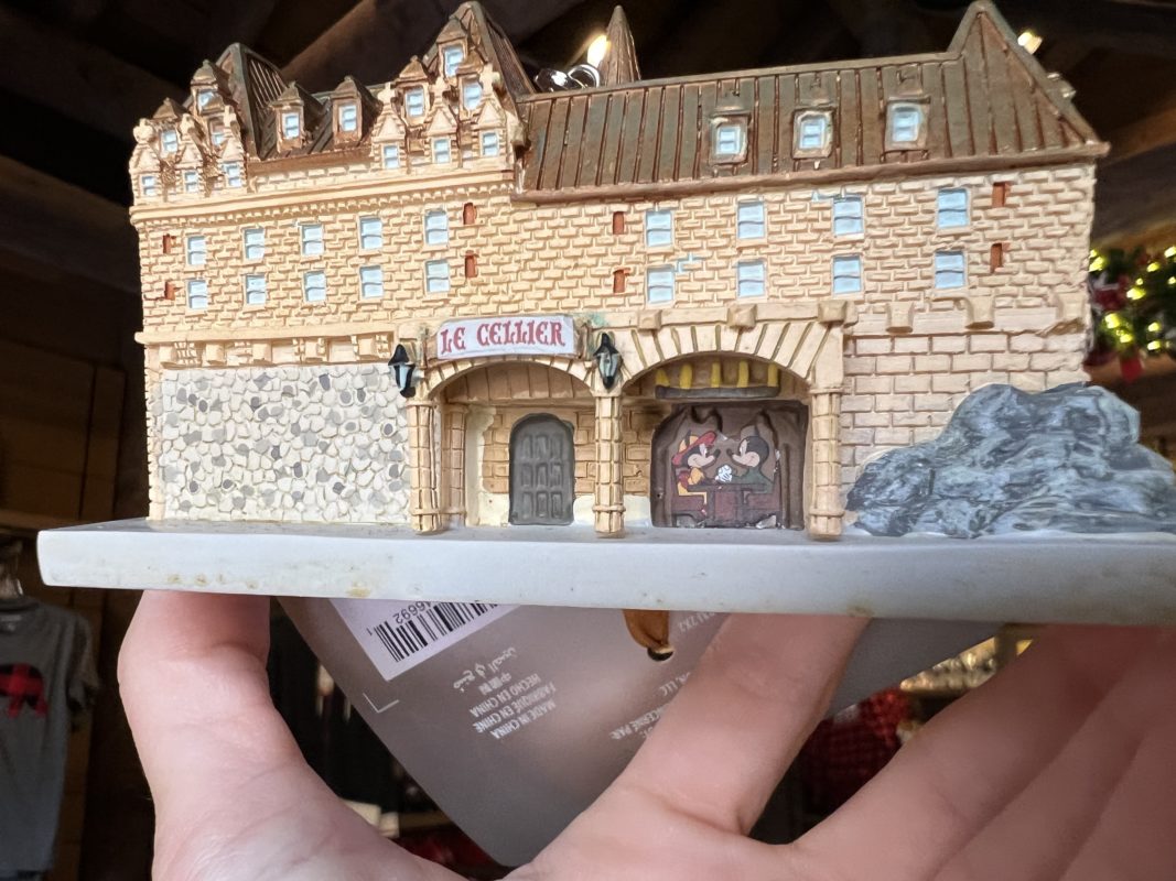 On one side is the entrance to Le Cellier, with Mickey and Minnie sitting in the window.