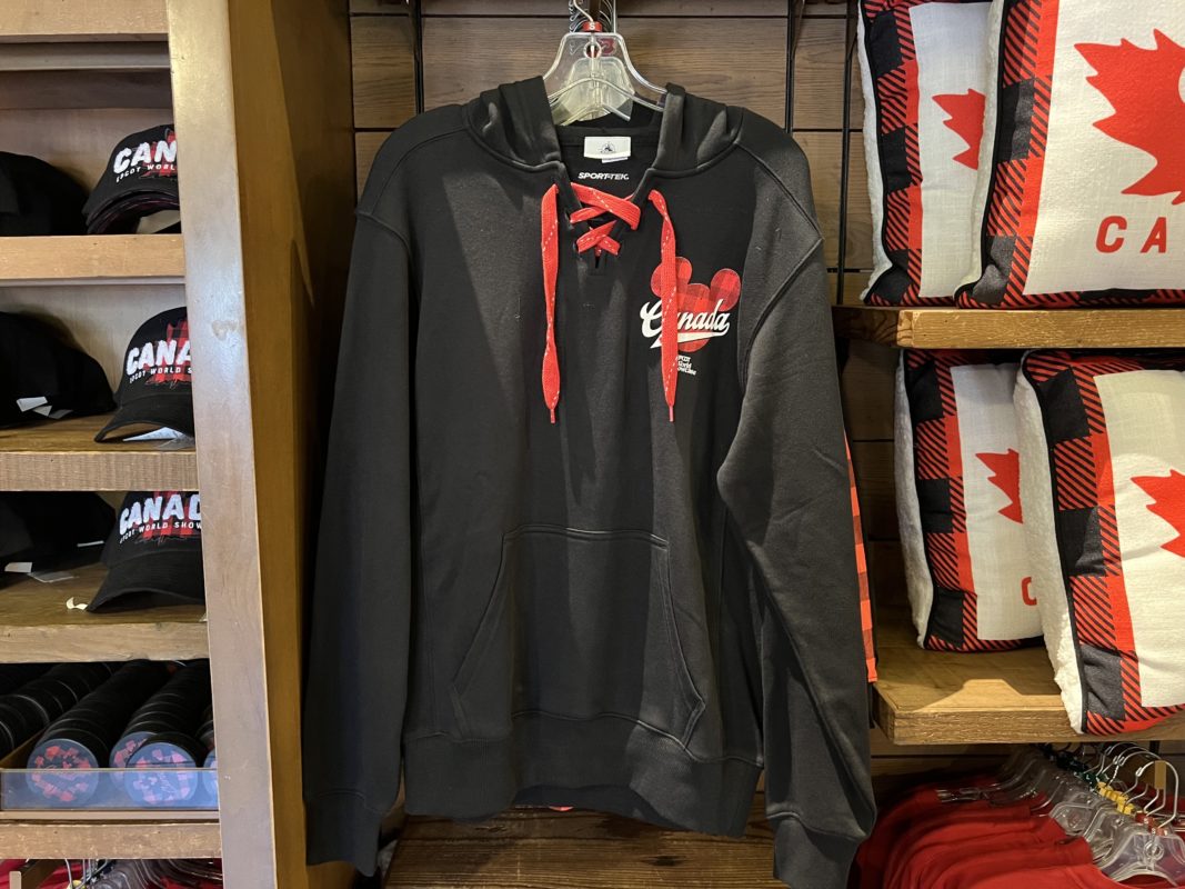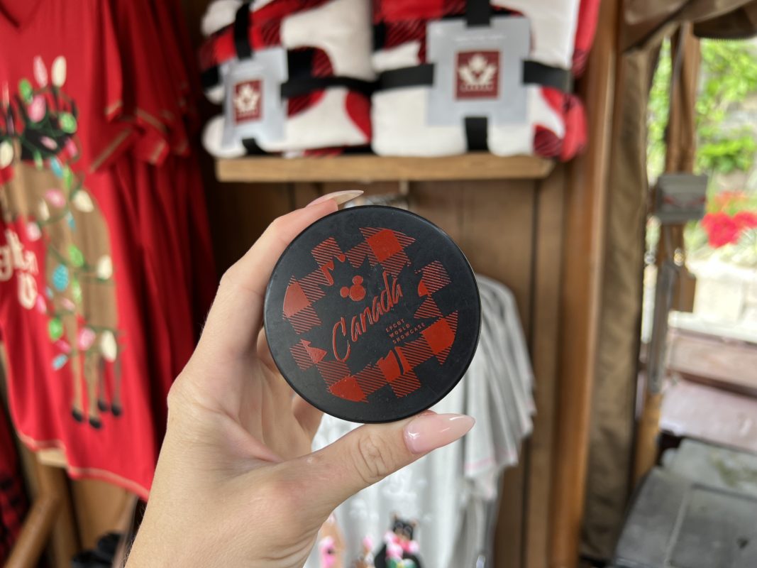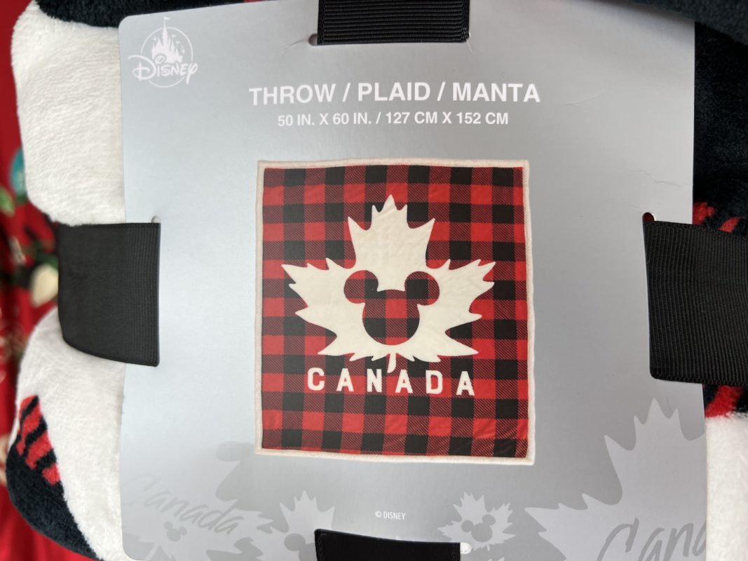 “Canada” is on a maple leaf with a Mickey head on the front.