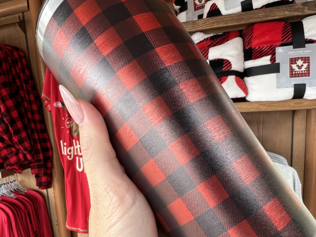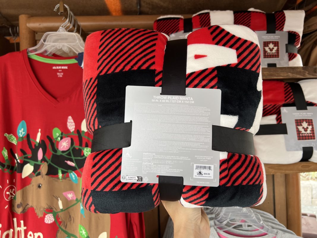 Pair this red plaid blanket with the throw pillow for a Canadian couch setup.